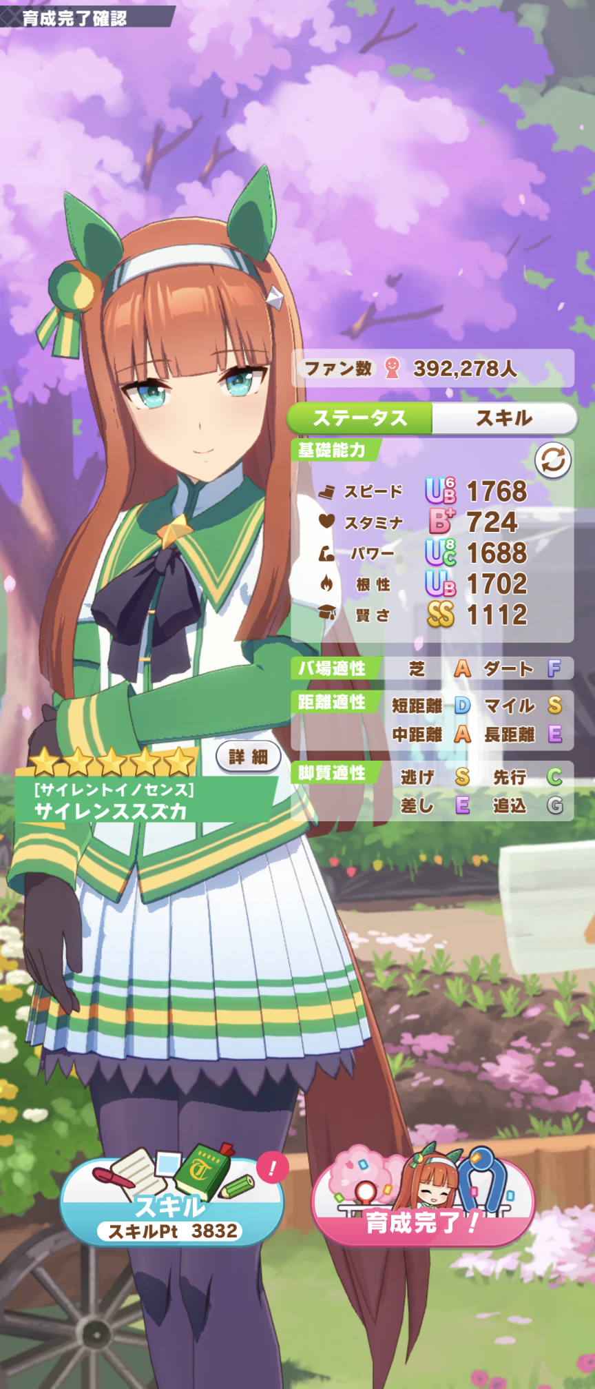 距離Sもなければ金スキルも完走してない先行3でやってたら欠損がエグいことになって、慌てて作り直してなんとかプラ4行ったよ…