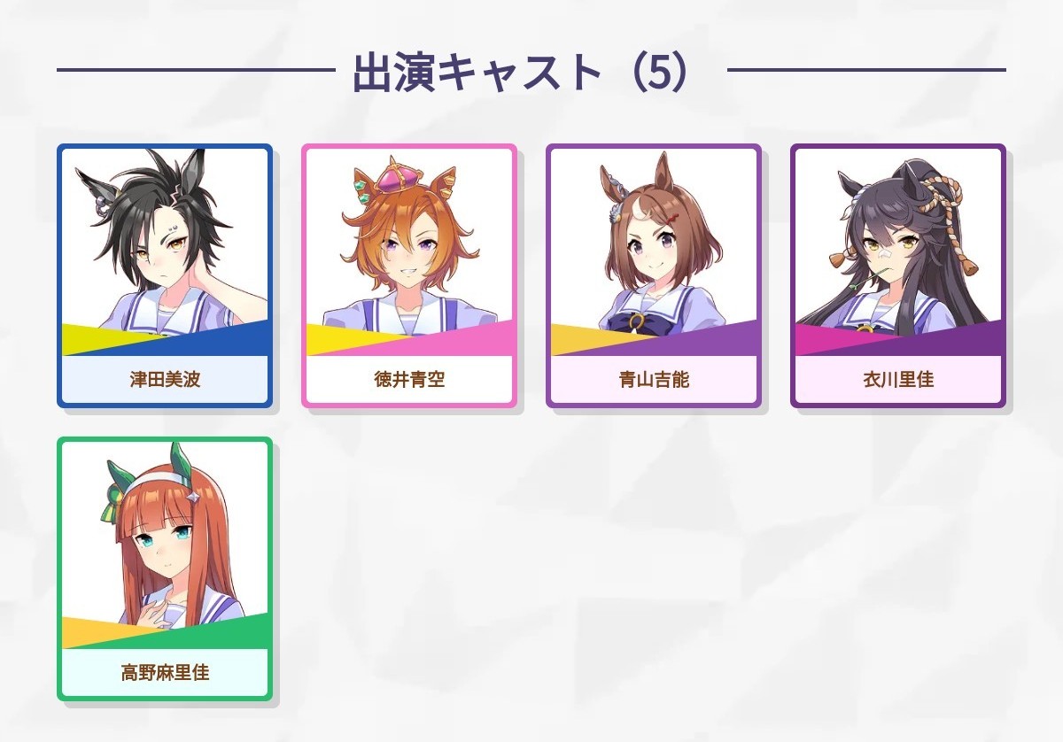 確かシャカール、ツヨシ、スズカ、オペラオー、ブライアンの中の人が演じてたっけ?