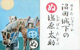 宇治川の合戦で一番乗りをしようと川に入ったら、ライバルの生月(いけづき)に「着物の帯が緩んでるよ」と言われ、