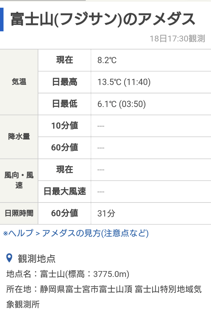 因みにこの場所は本日の最高気温が15℃以下だったようだ