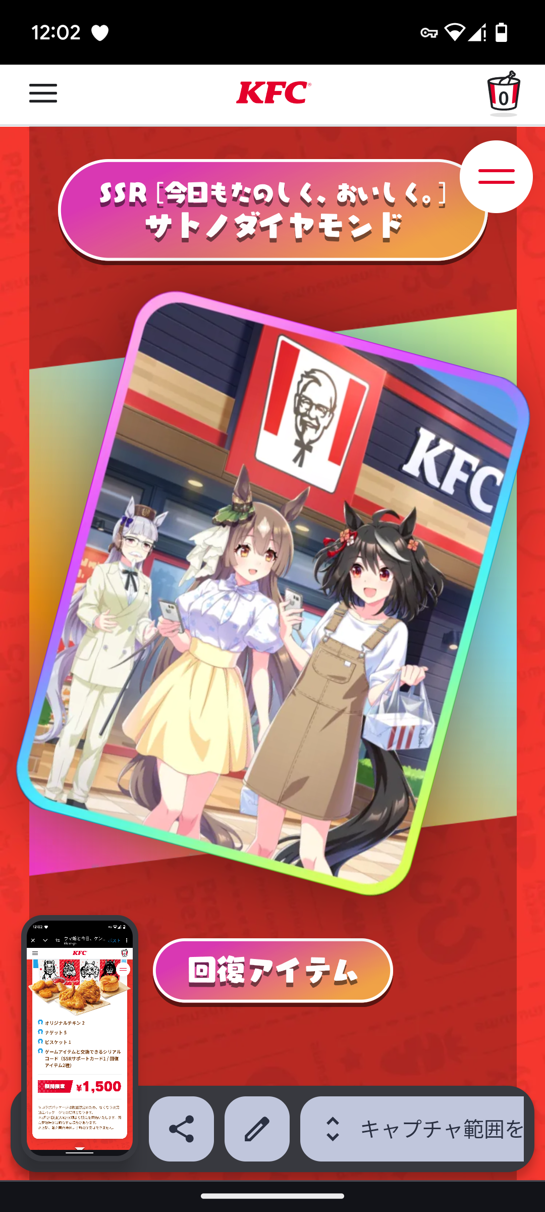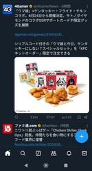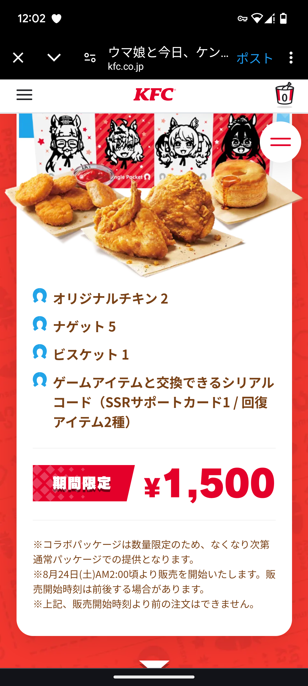 オリジナルチキン2個、ナゲット5個、ビスケット1個、ゲームで使えるコラボアイテムのセットで1500円・・・良いんじゃないかな
