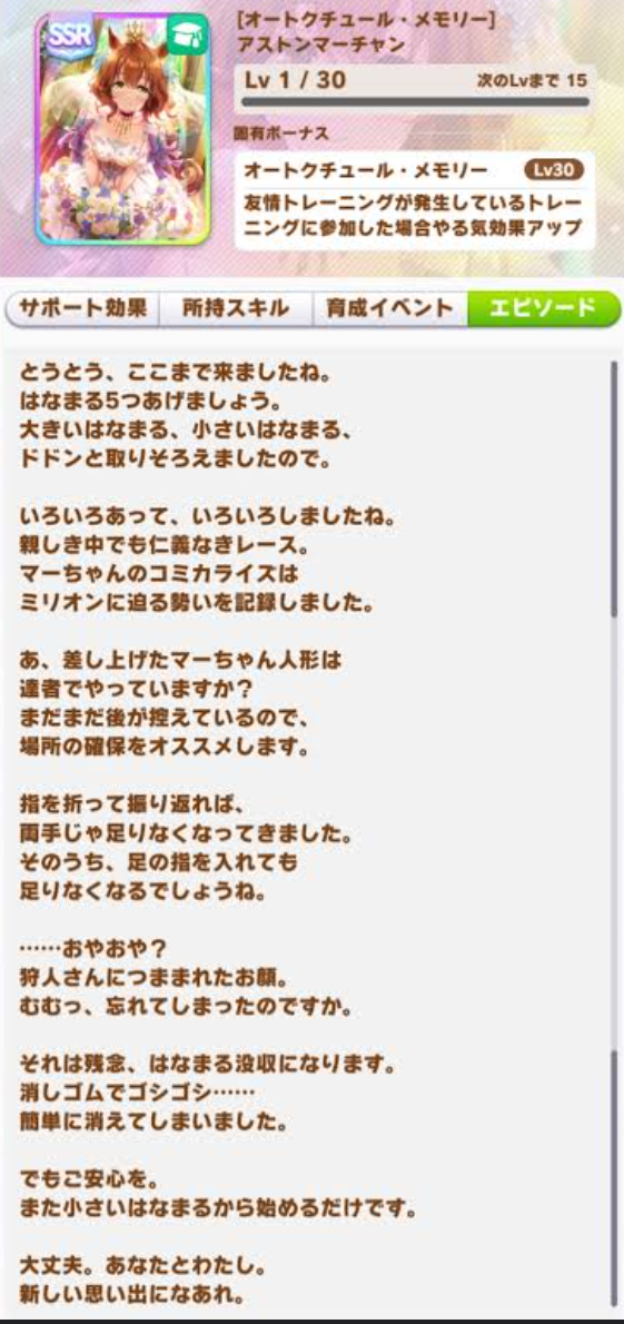 「消えたくない」「自分の痕跡を残したい」と思っていたマーチャンが「たとえ消えてもあなたがいれば大丈夫」「また作ればいい」と思えるようになったハッピーエンド感満載のサポカ