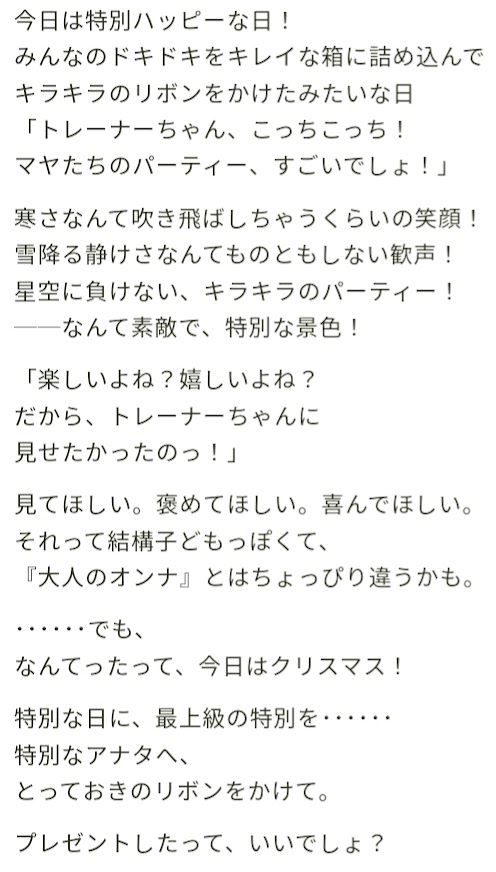 ナチュラルにトレーナーへの評価高いのと独占欲出してるのクッソ尊い