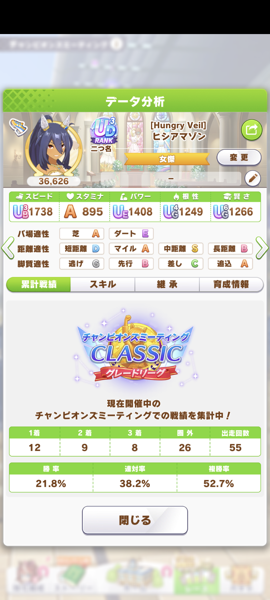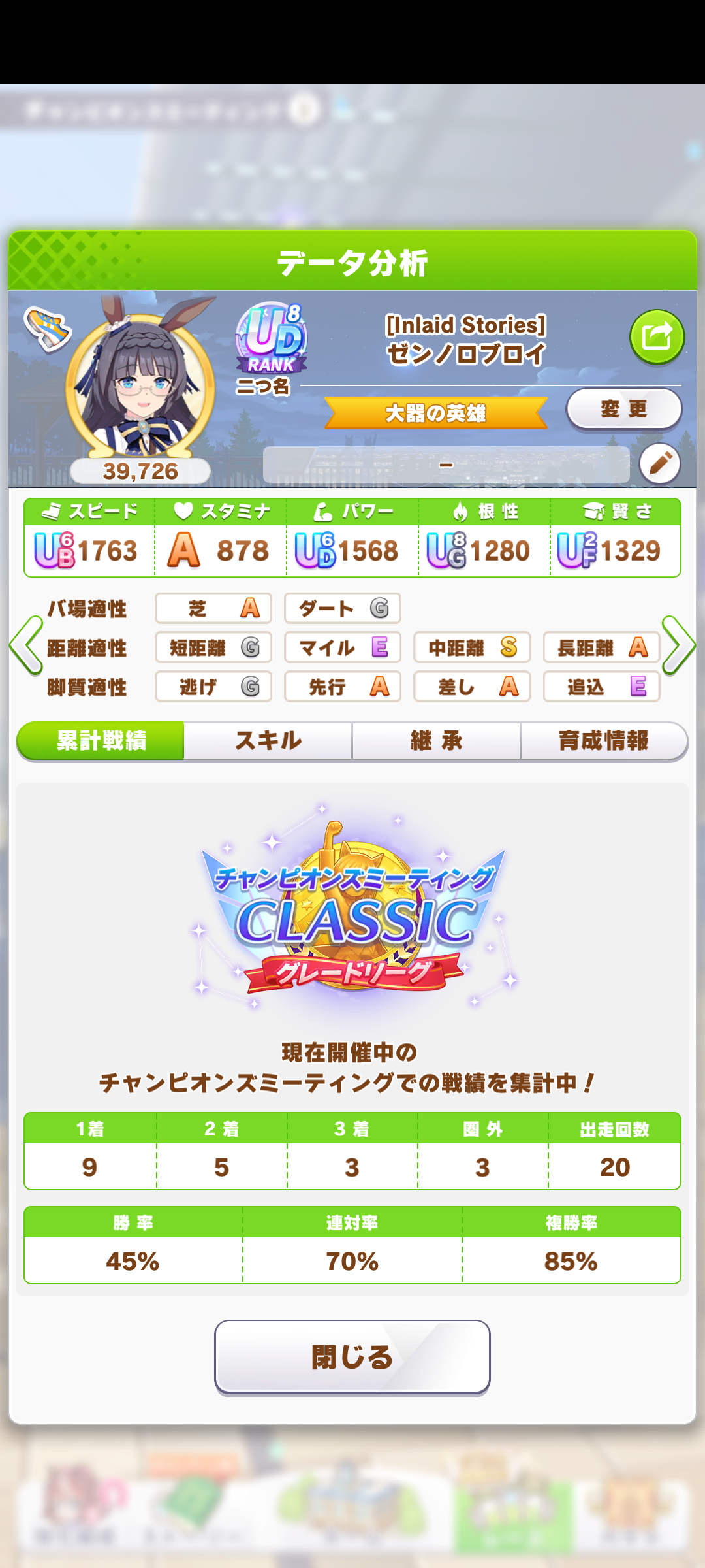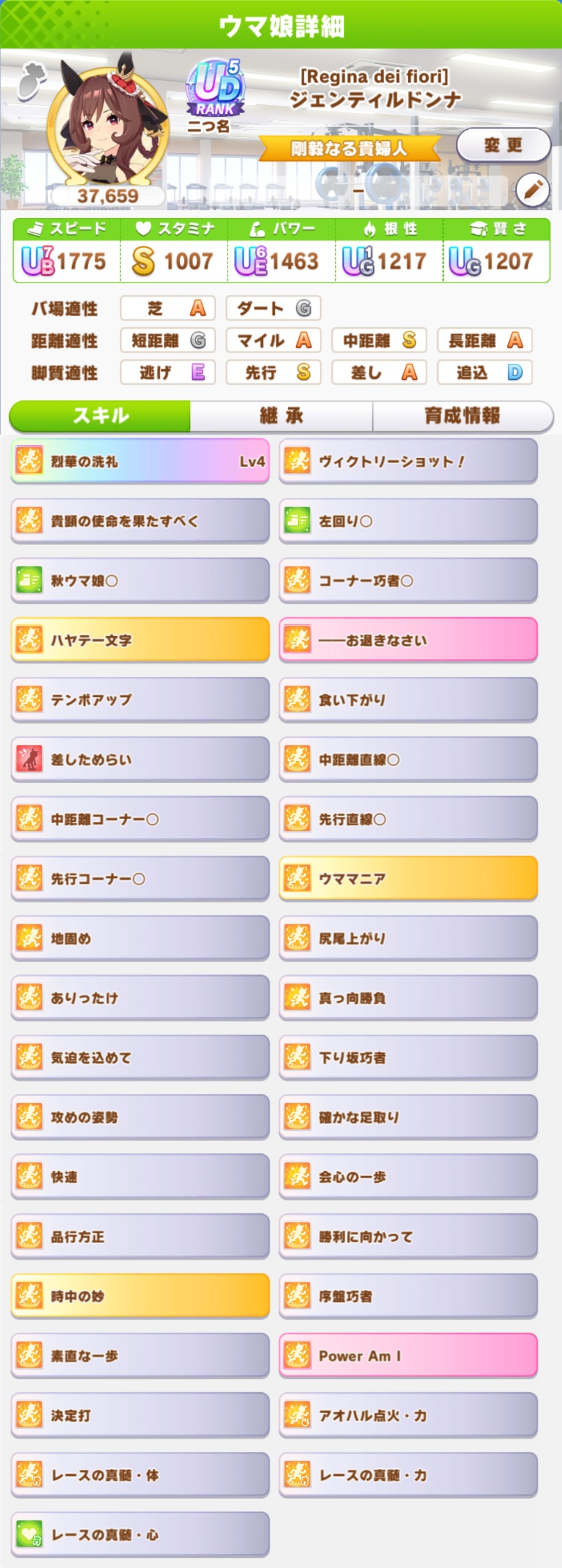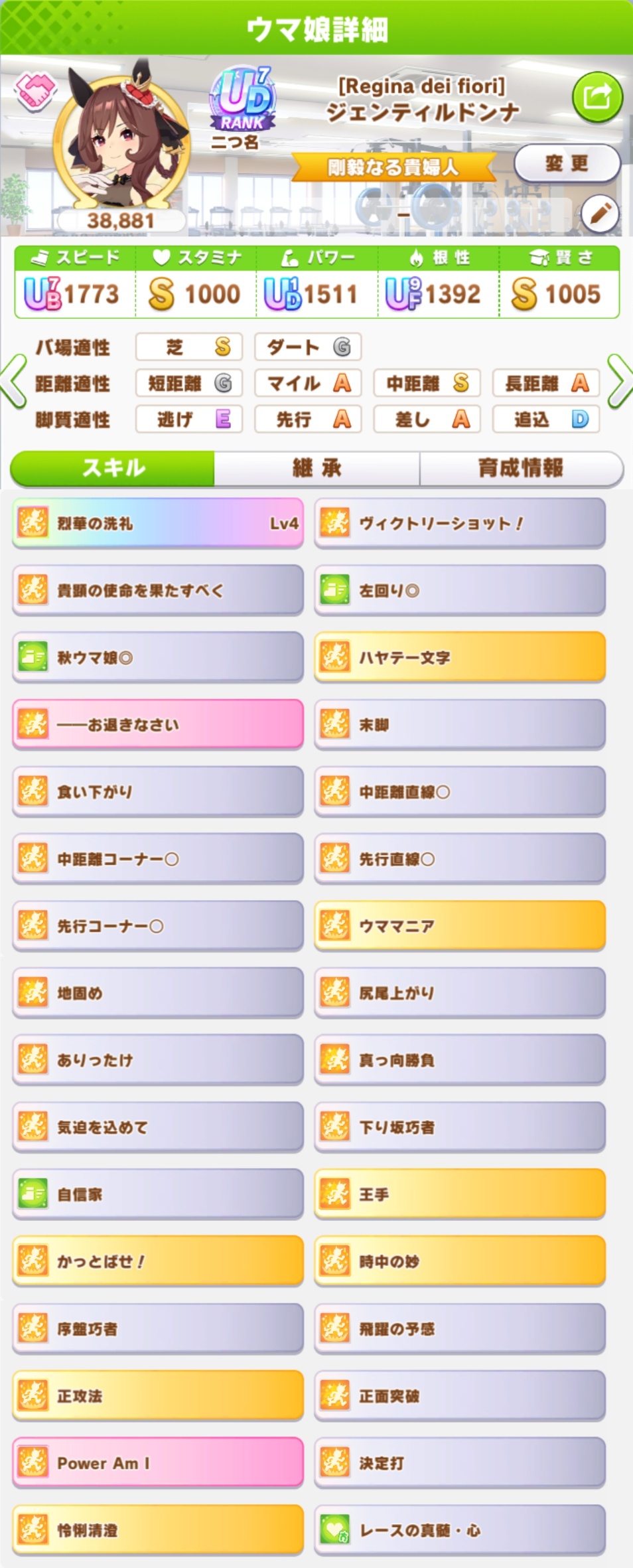 継承速度は何が良いだろうか…相性値まで拘るとタイキの親に継承速度仕込めないし、そもそも直線コーナー緑◎にすると継承速度が良くて2つしか取れない…