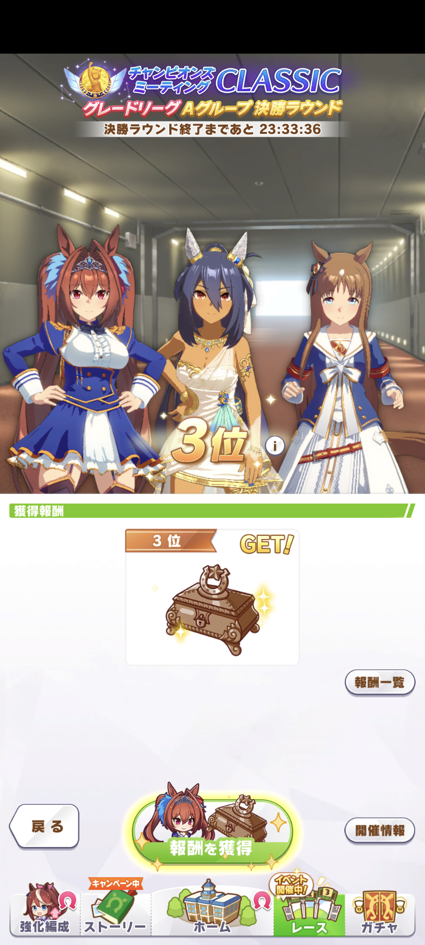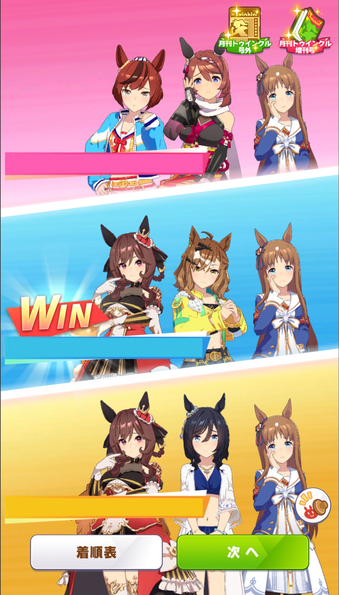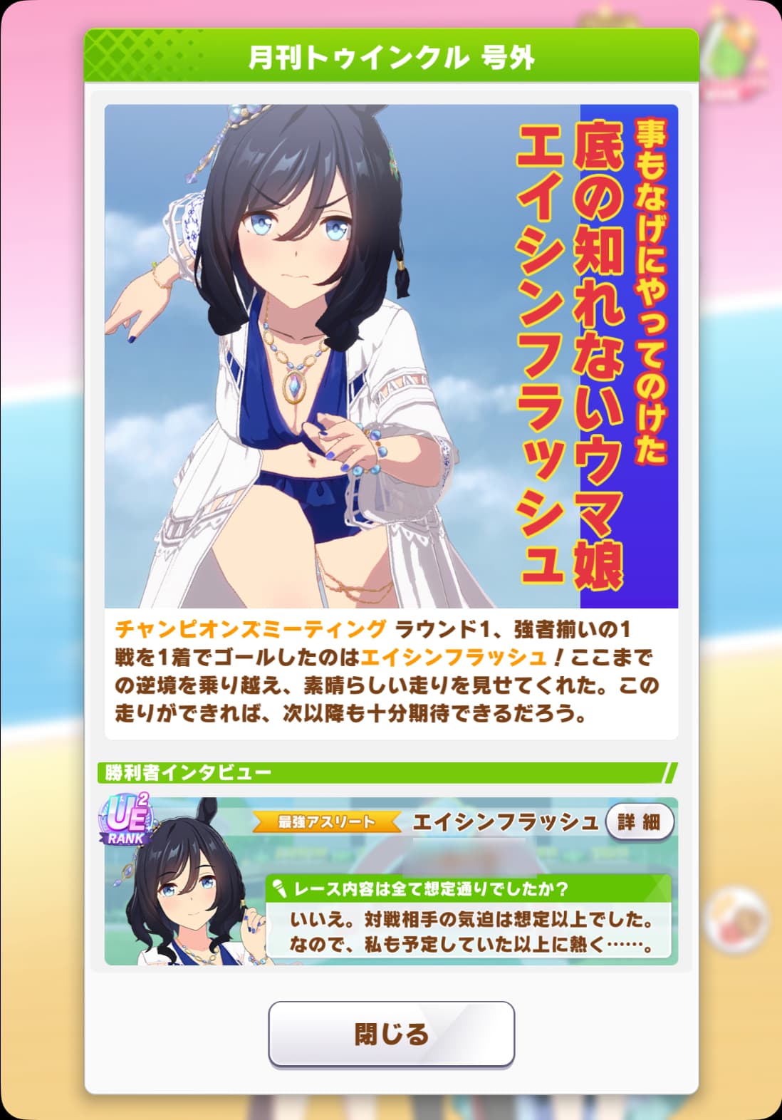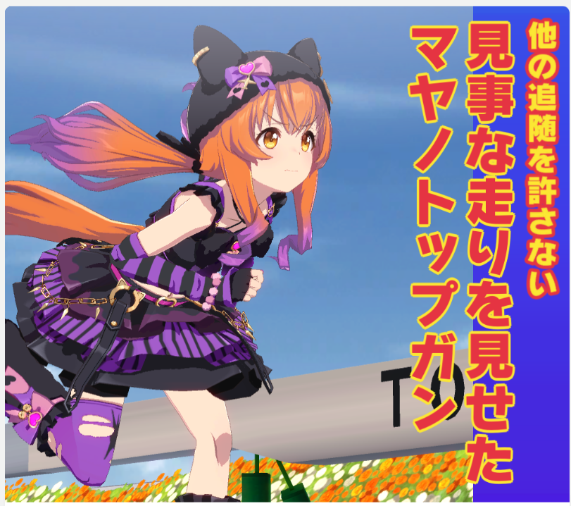 逃げが居なくて先行がずっと逃げてたからかギリギリで水着フラッシュがチョコフラッシュ固有とカイチョー固有を発動させて差し切り
