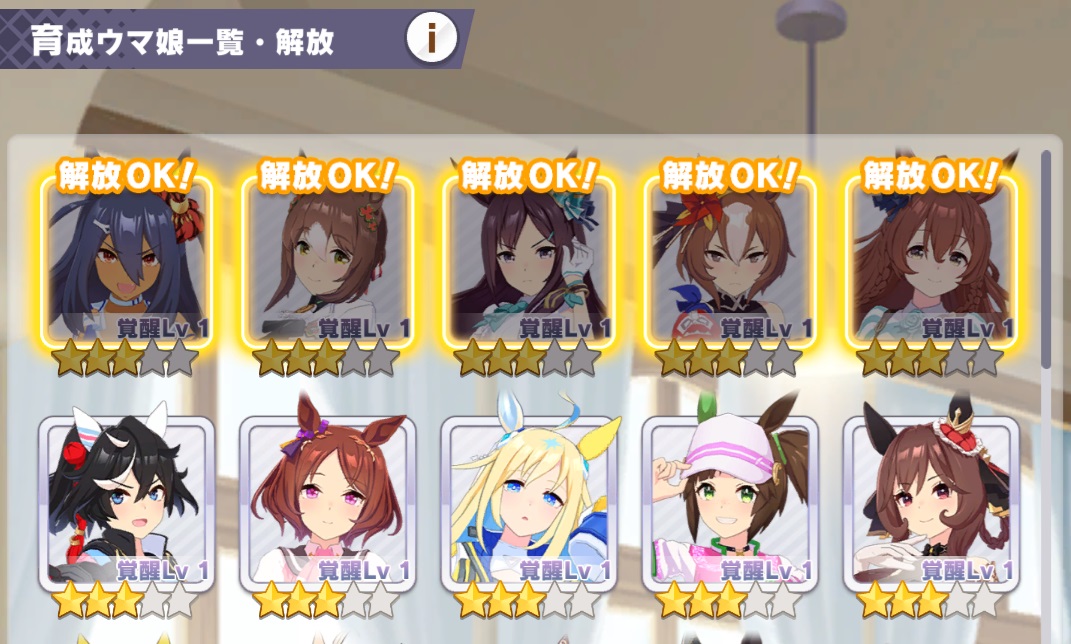 解放OKはすぐにシナリオ読みにいくけどレジェンドレースが解放されて一月もせずに読めるくらい溜まってる子はチケット使うのもったいないという理由でセレチケを溜めてるな