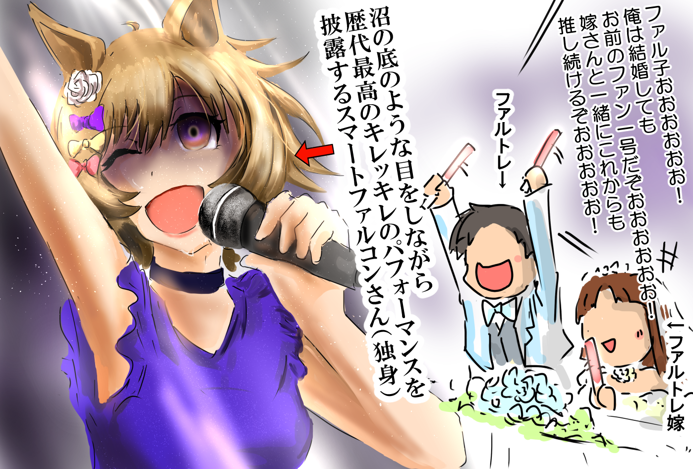 ファルトレの結婚披露宴の余興で盛大にお祝いの歌を熱唱するスマートファルコンさん(20代半ば)