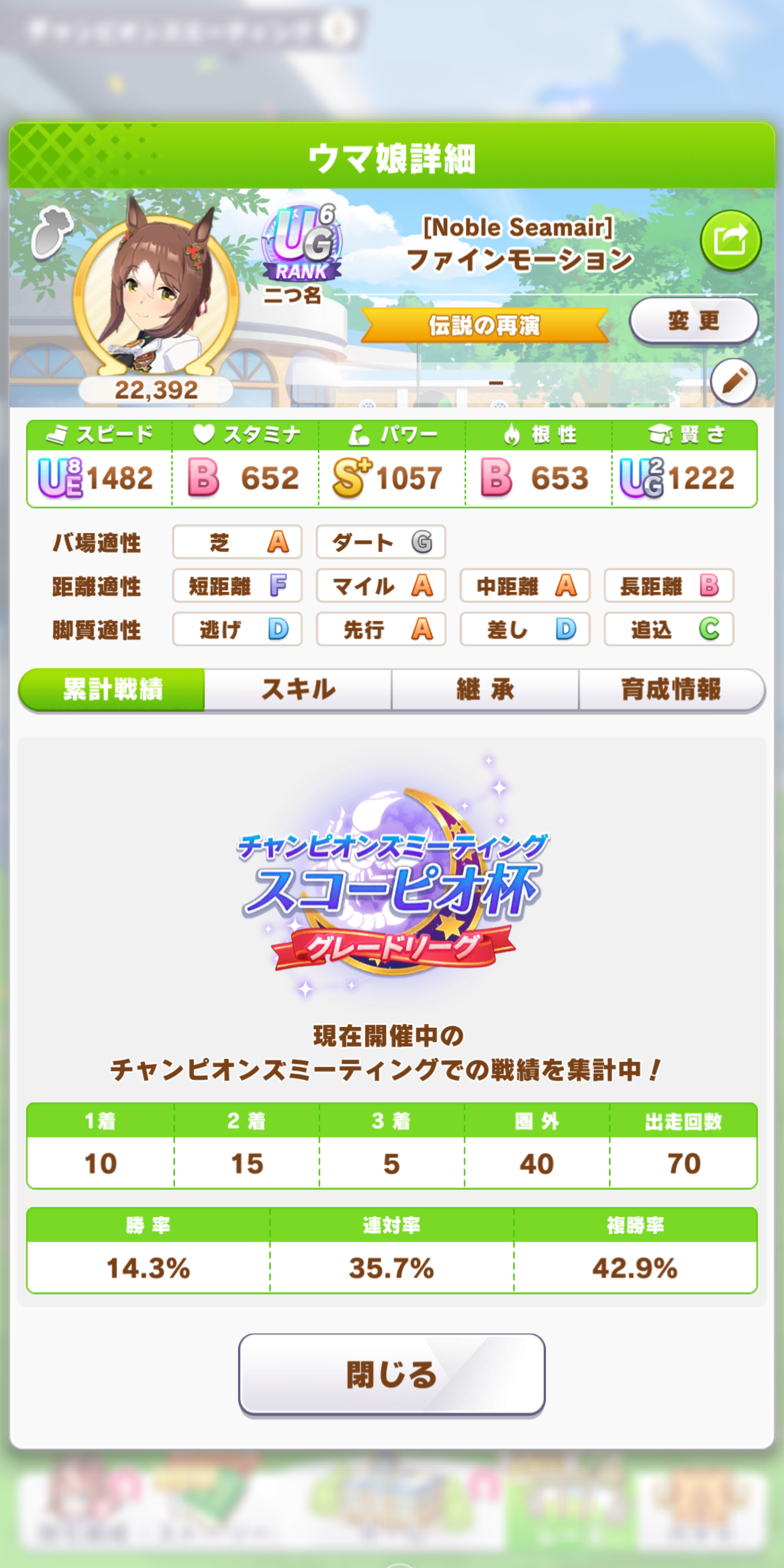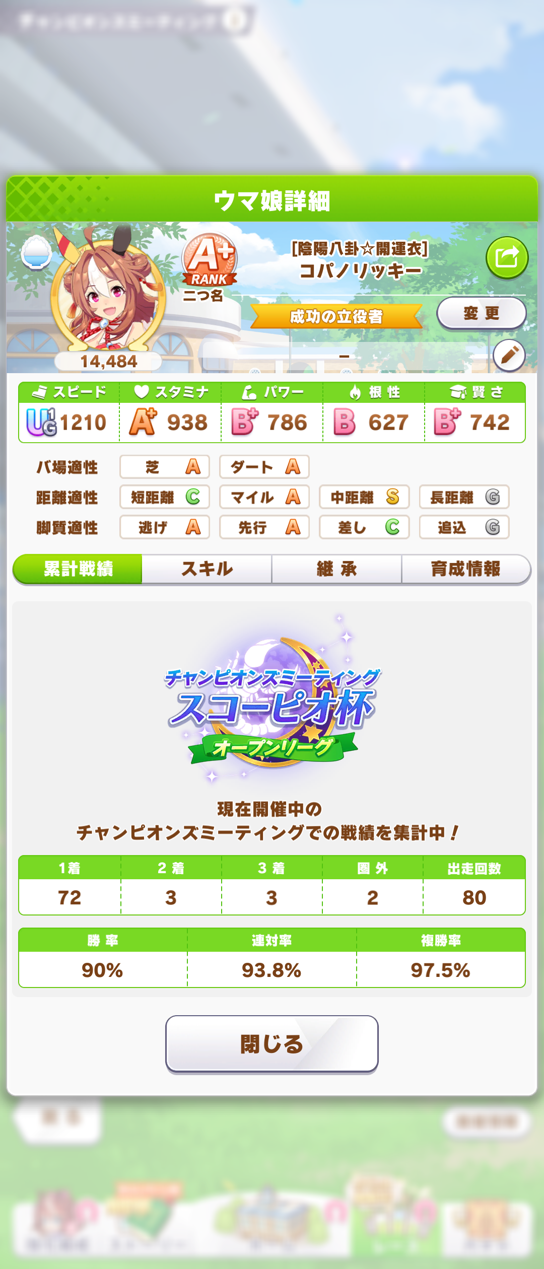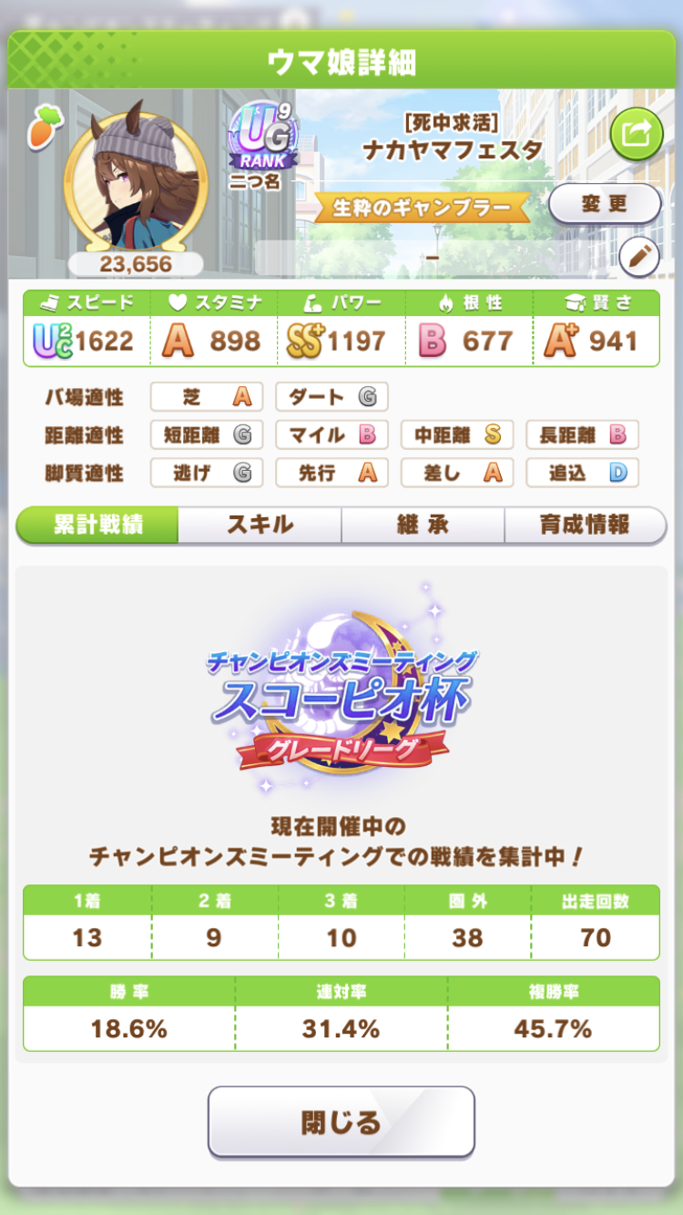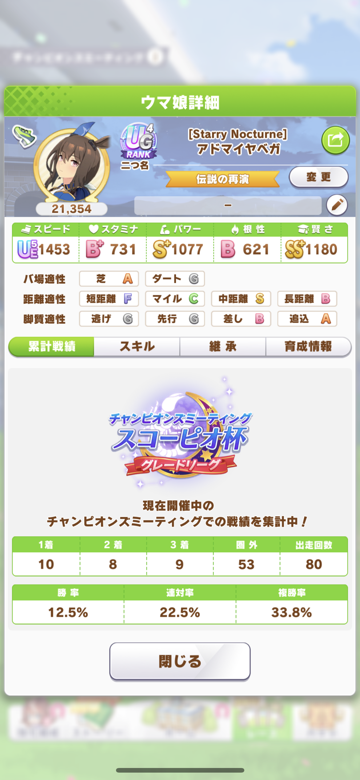スタミナ盛れてたか中距離Sついてたらもうちょい勝てたのかな。