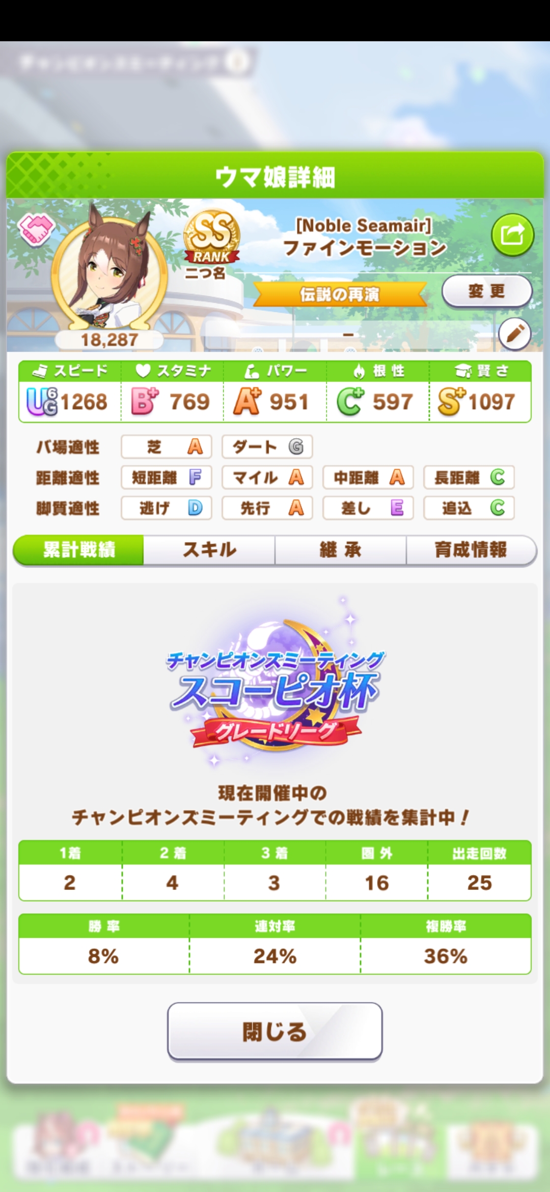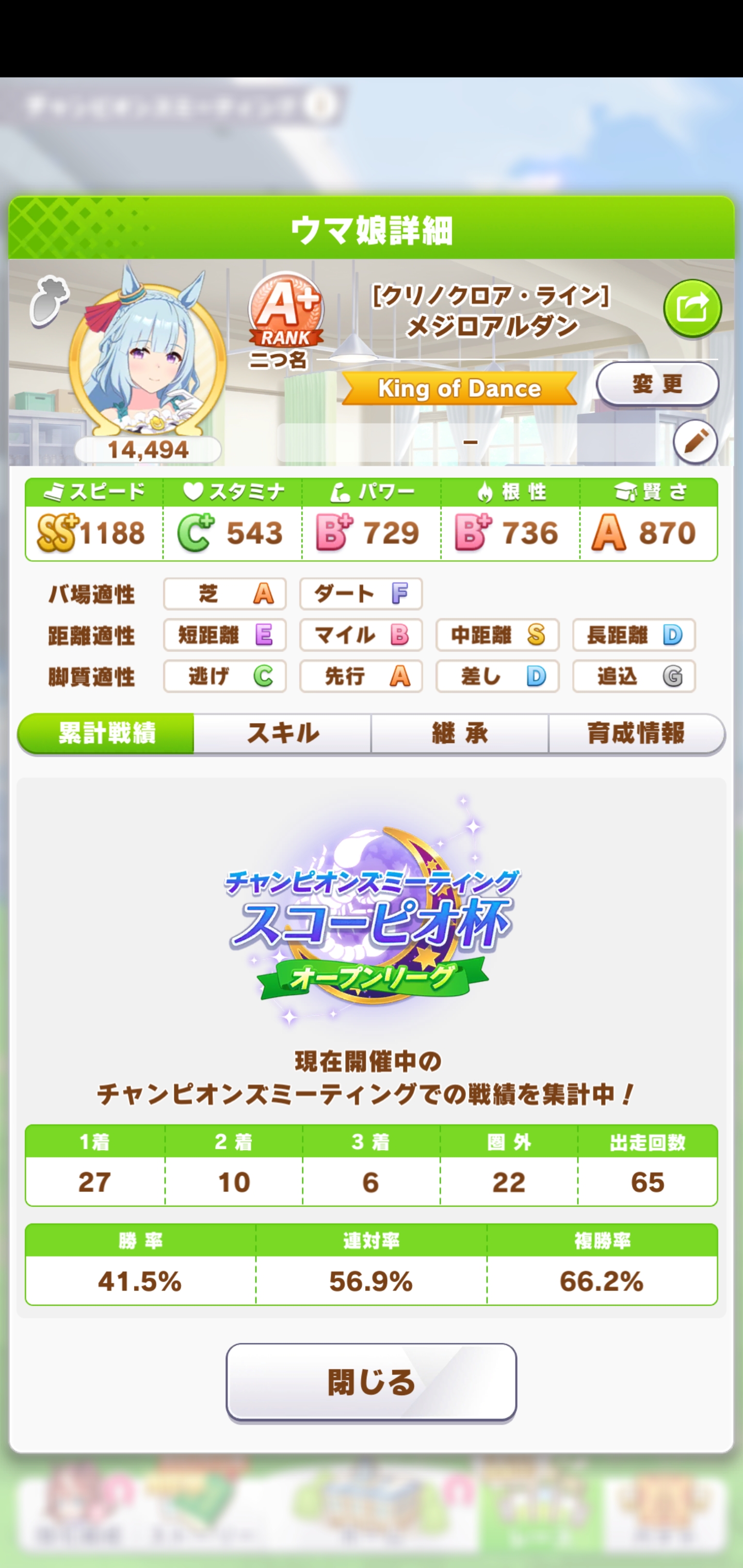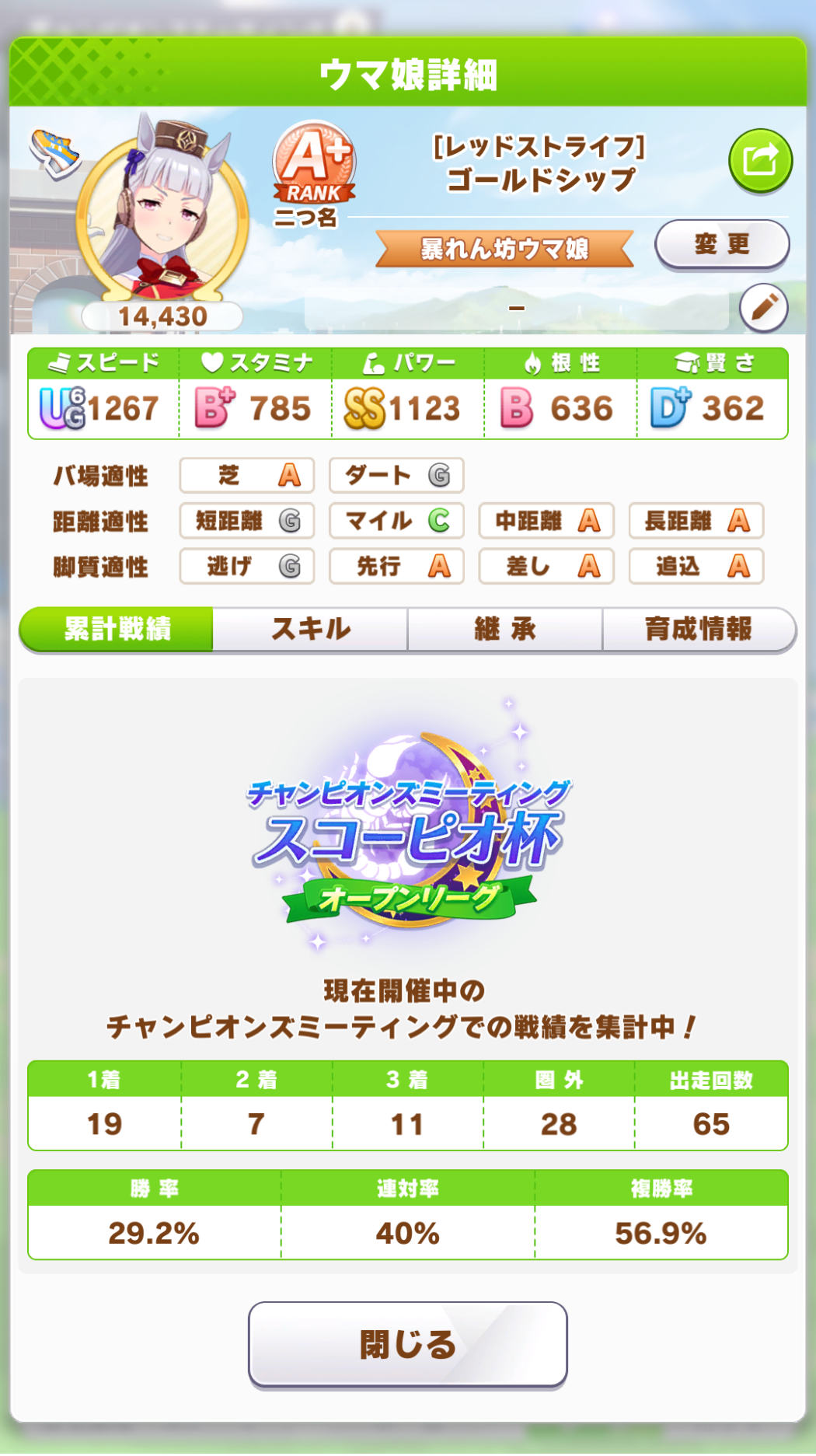 スタミナ盛れてたか中距離Sついてたらもうちょい勝てたのかな。