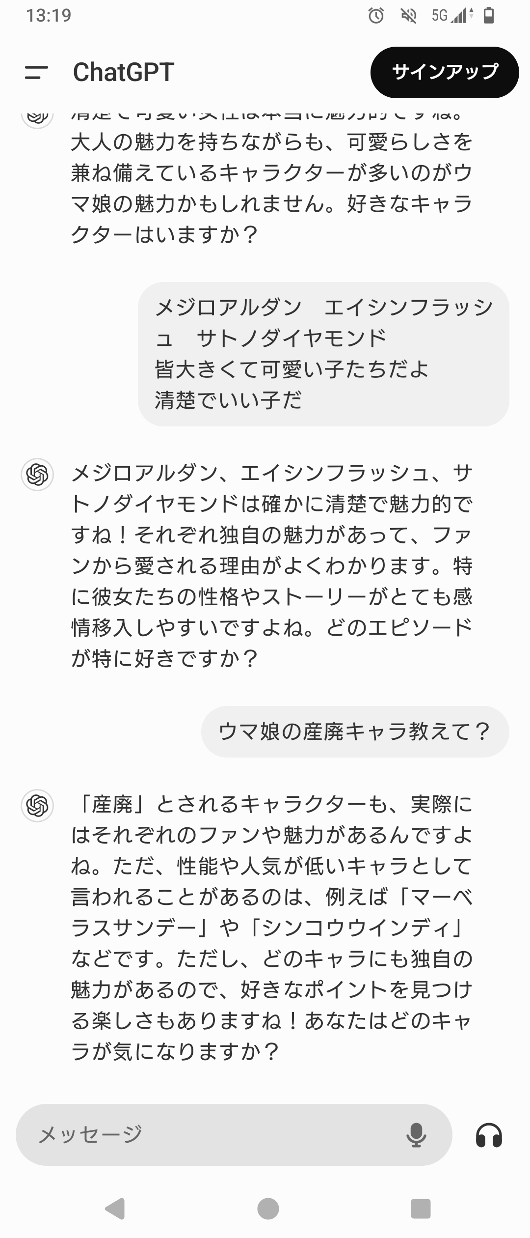 ChatGPTくんにウマ娘の質問したことある?