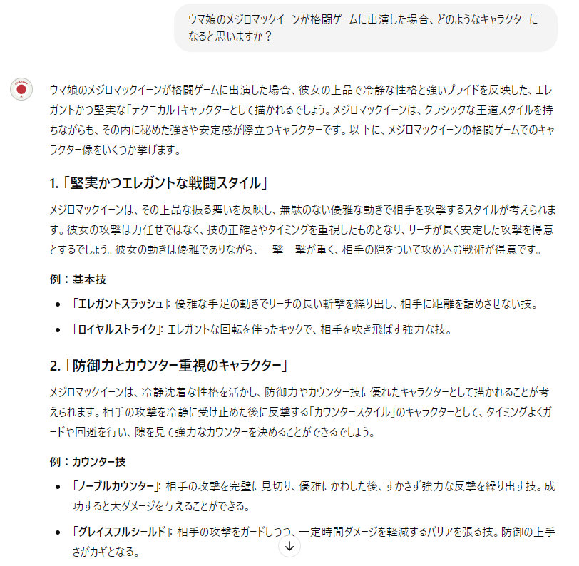 メジロマックイーンを格ゲーキャラにしたら? と聞いてみた