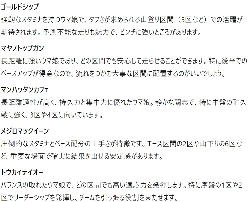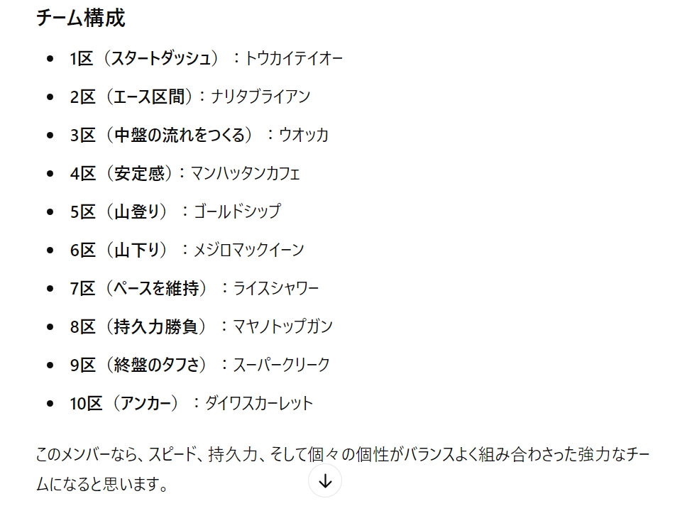 Q.現時点で存在するウマ娘プリティーダービーのキャラクターの中で箱根駅伝を走らせるならどの10人を選びますか。