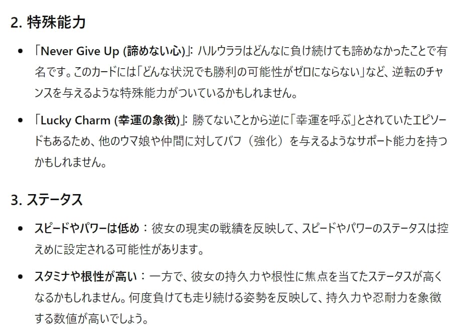 ウマ娘関連の怪文書とか入力してみたら面白いかも?