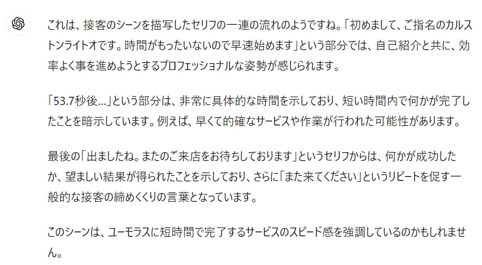 GPTくんも速さと的確さを評価している模様