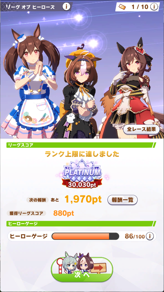 プラチナ4称号が実装されてから今まで「全ての」LoHでプラチナ3止まりだったけど、ついに念願のプラチナ4到達