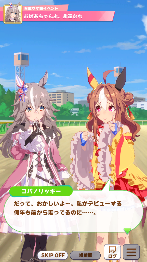 実際高等部ってくくりになってはいるけど、運営もマルおねは二十代前半というかトレーナーとタメくらいの年齢ってことにしときたいんじゃないかな。ホーム画面の免許の下りとか見てて思う。新卒22と21歳の学生の距離感としてはすごいしっくりくるし