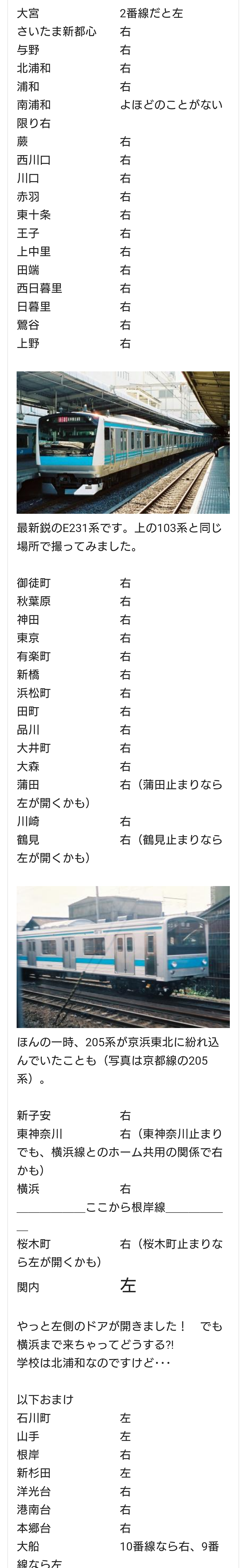 京浜東北線南行(大宮始発→大船行)での進行方向のドアが開く方向一覧