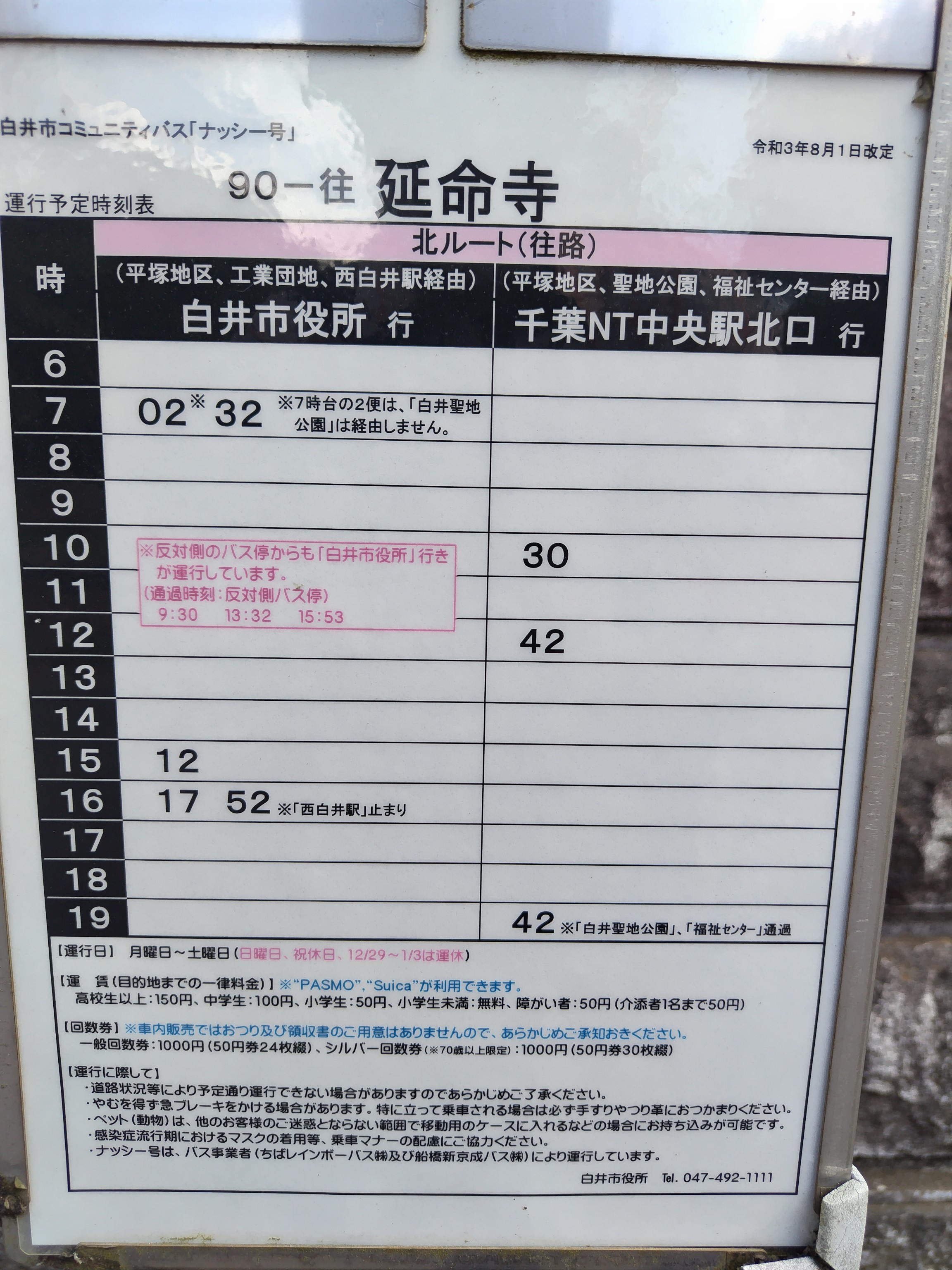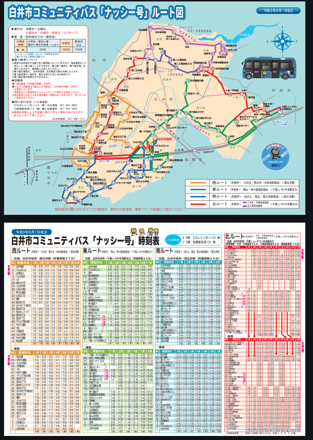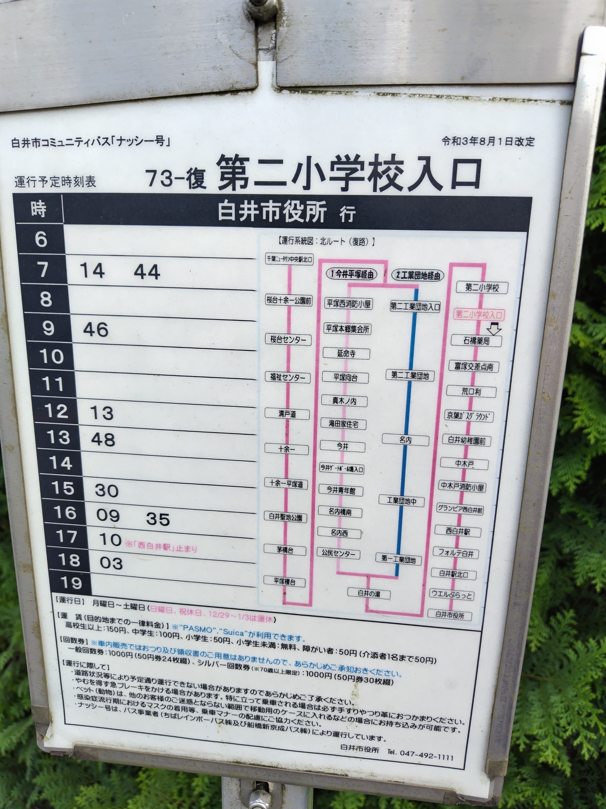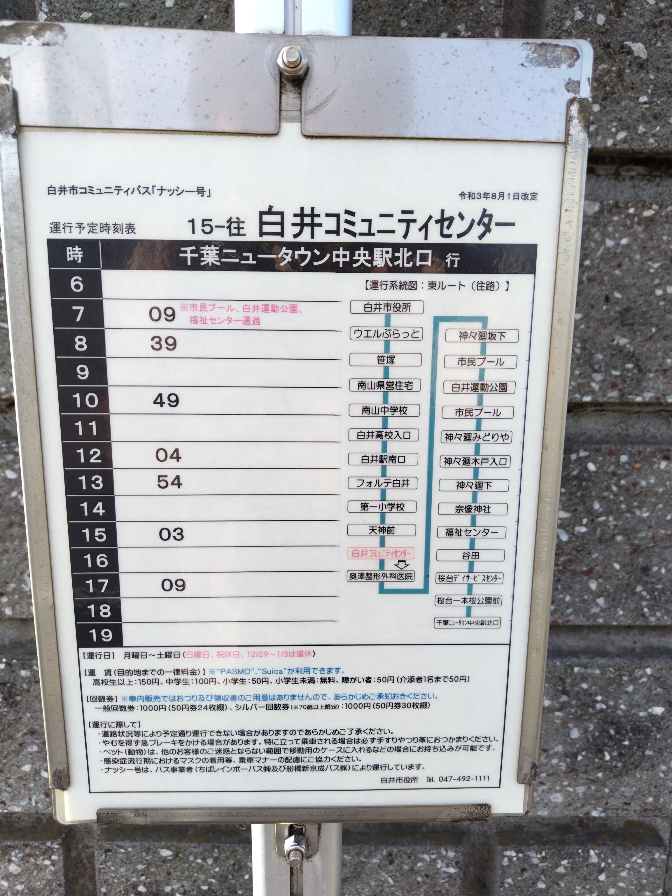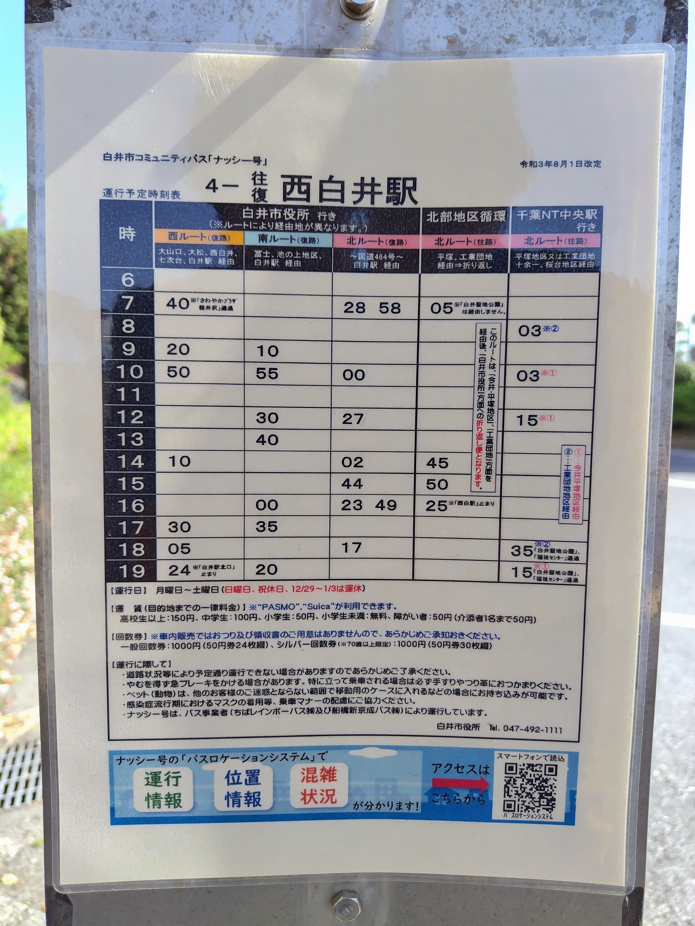 「白井市役所」「白井駅北口」「白井駅南口」「西白井駅」