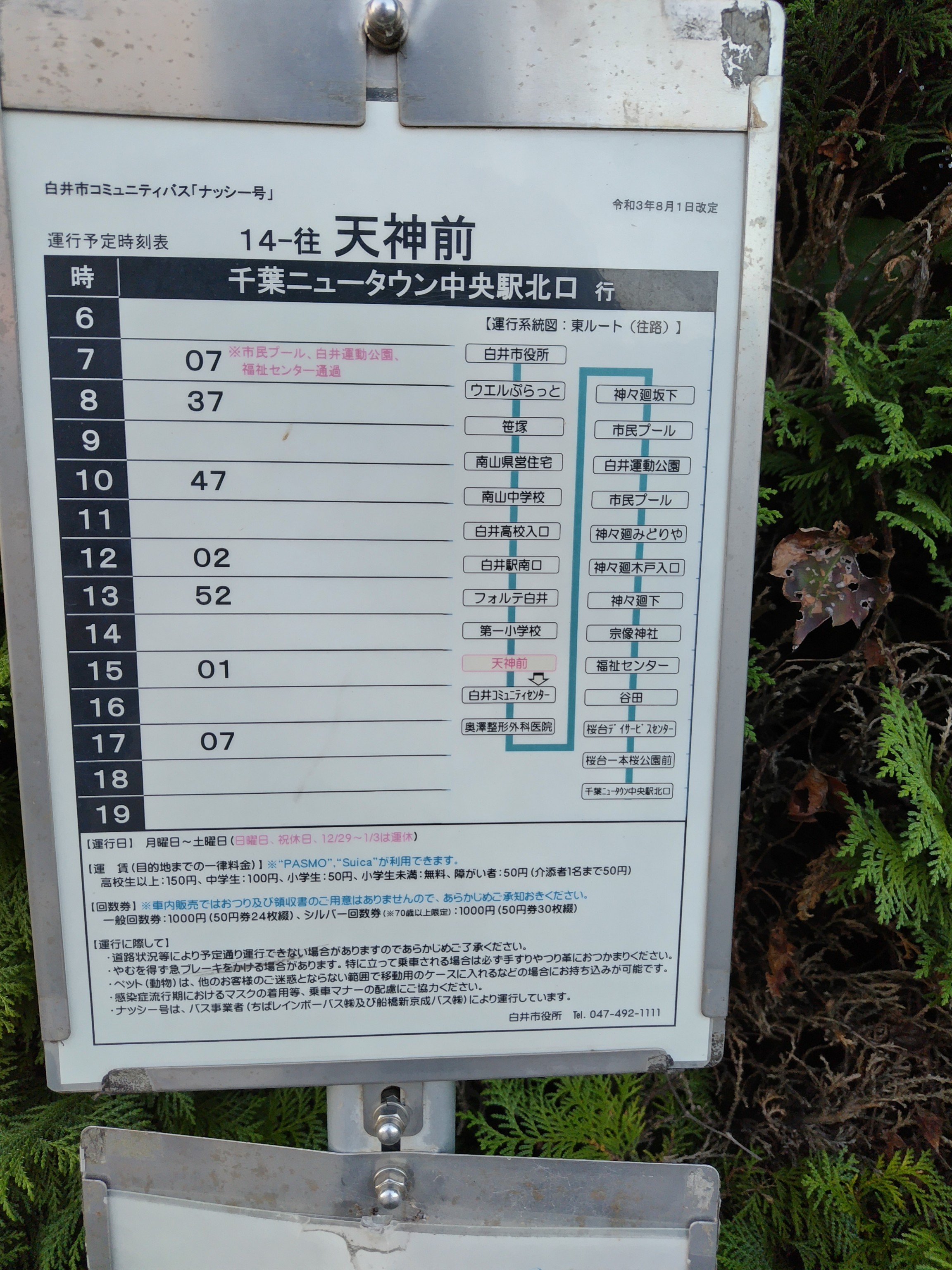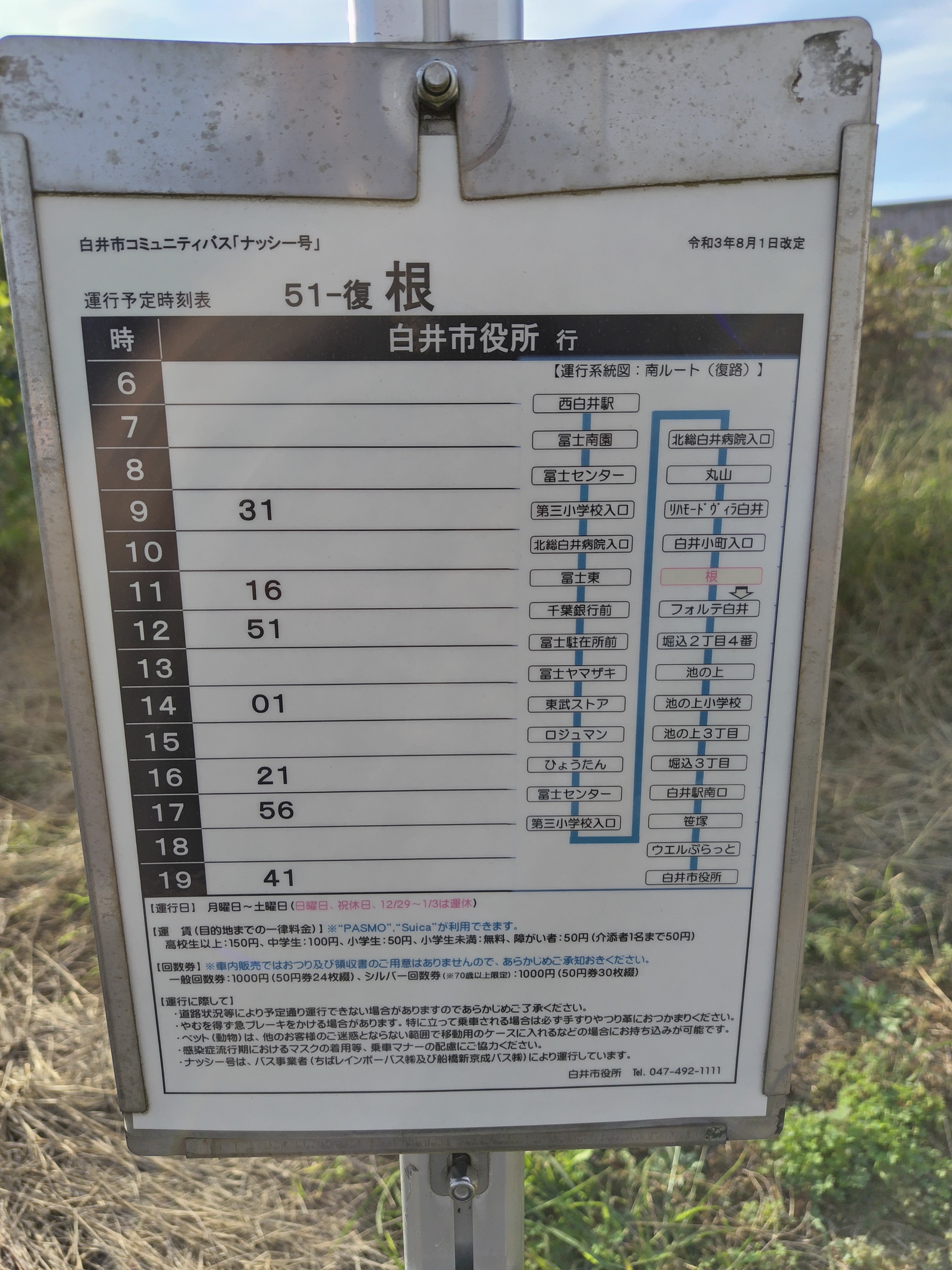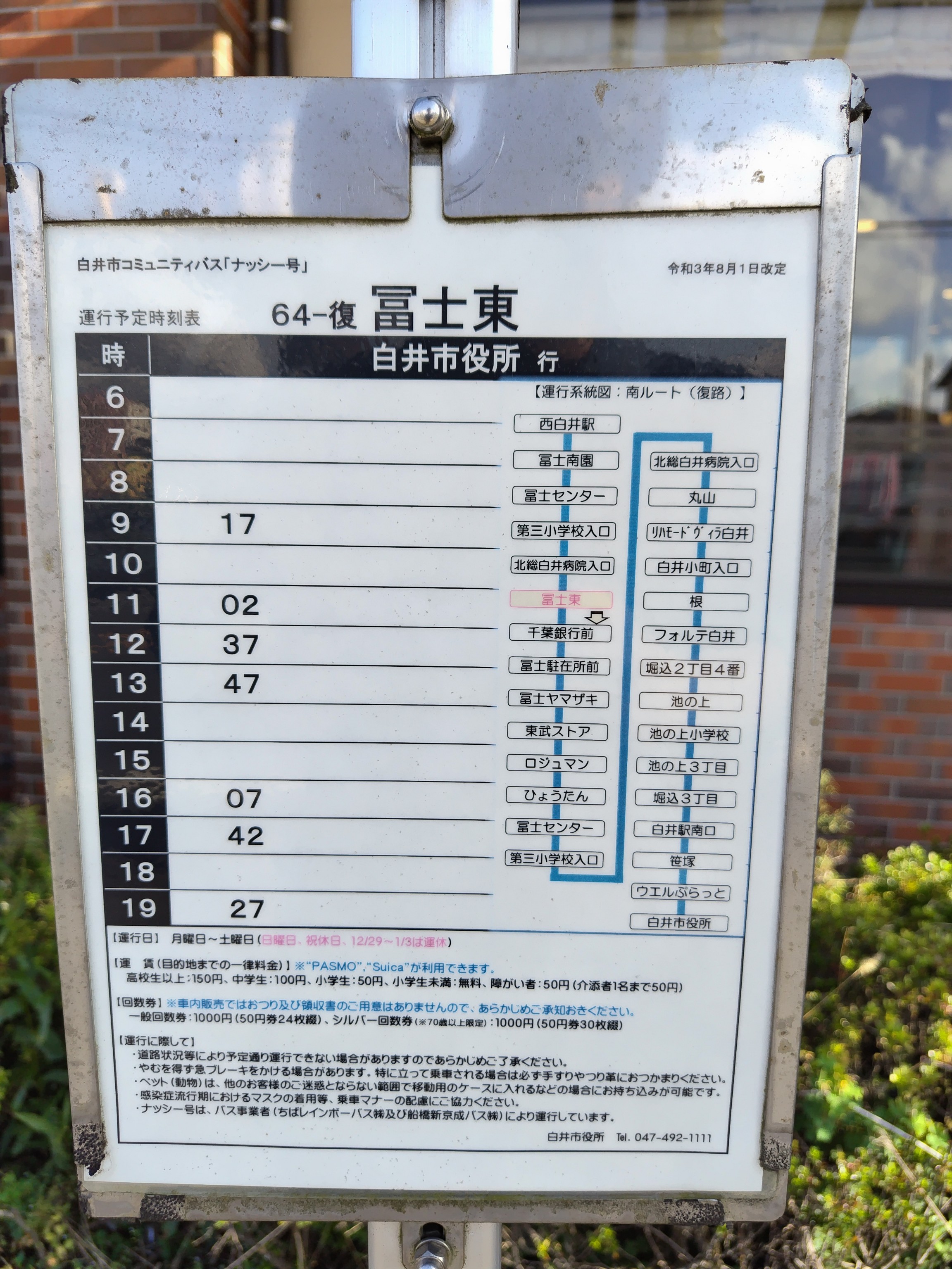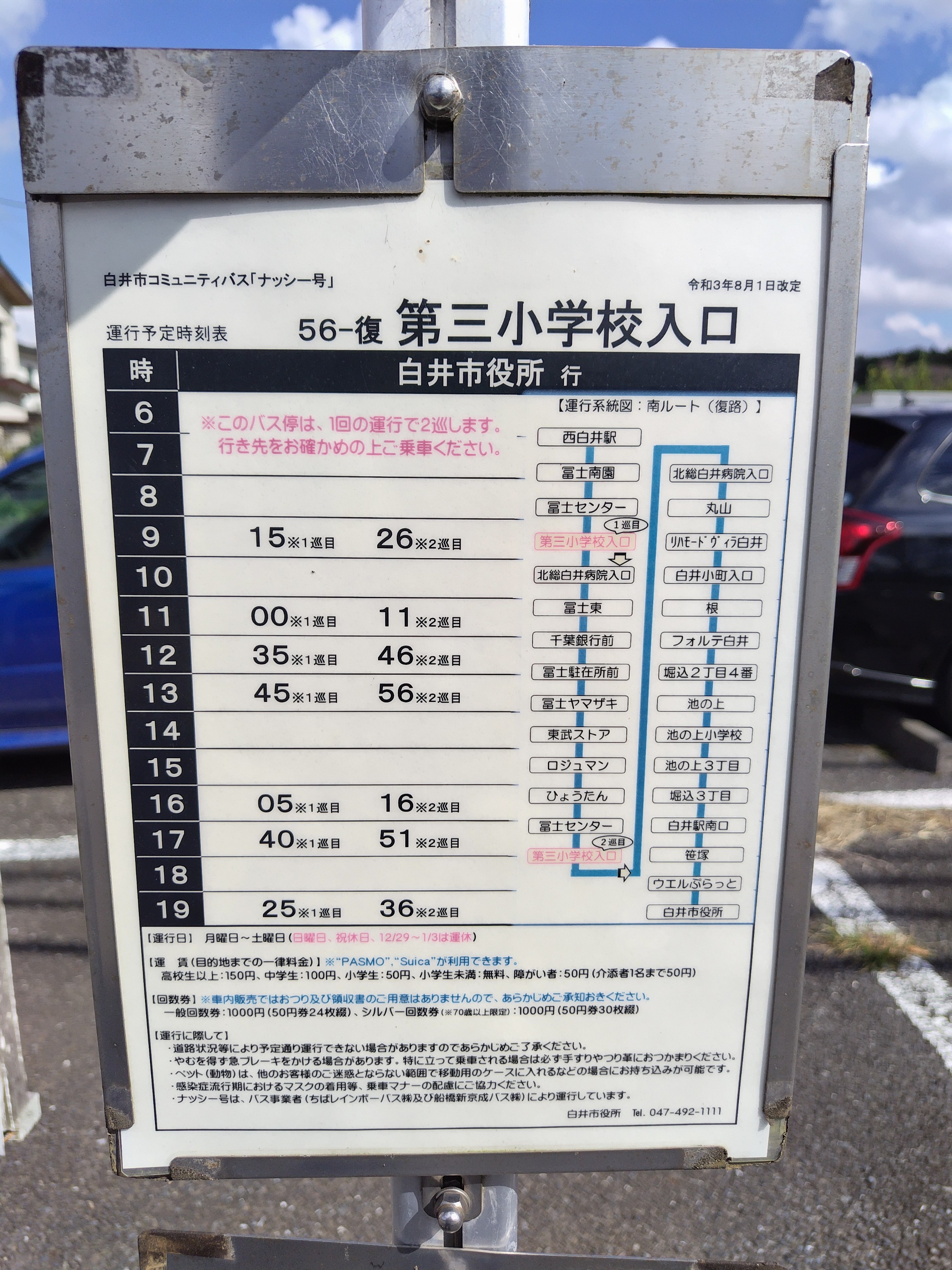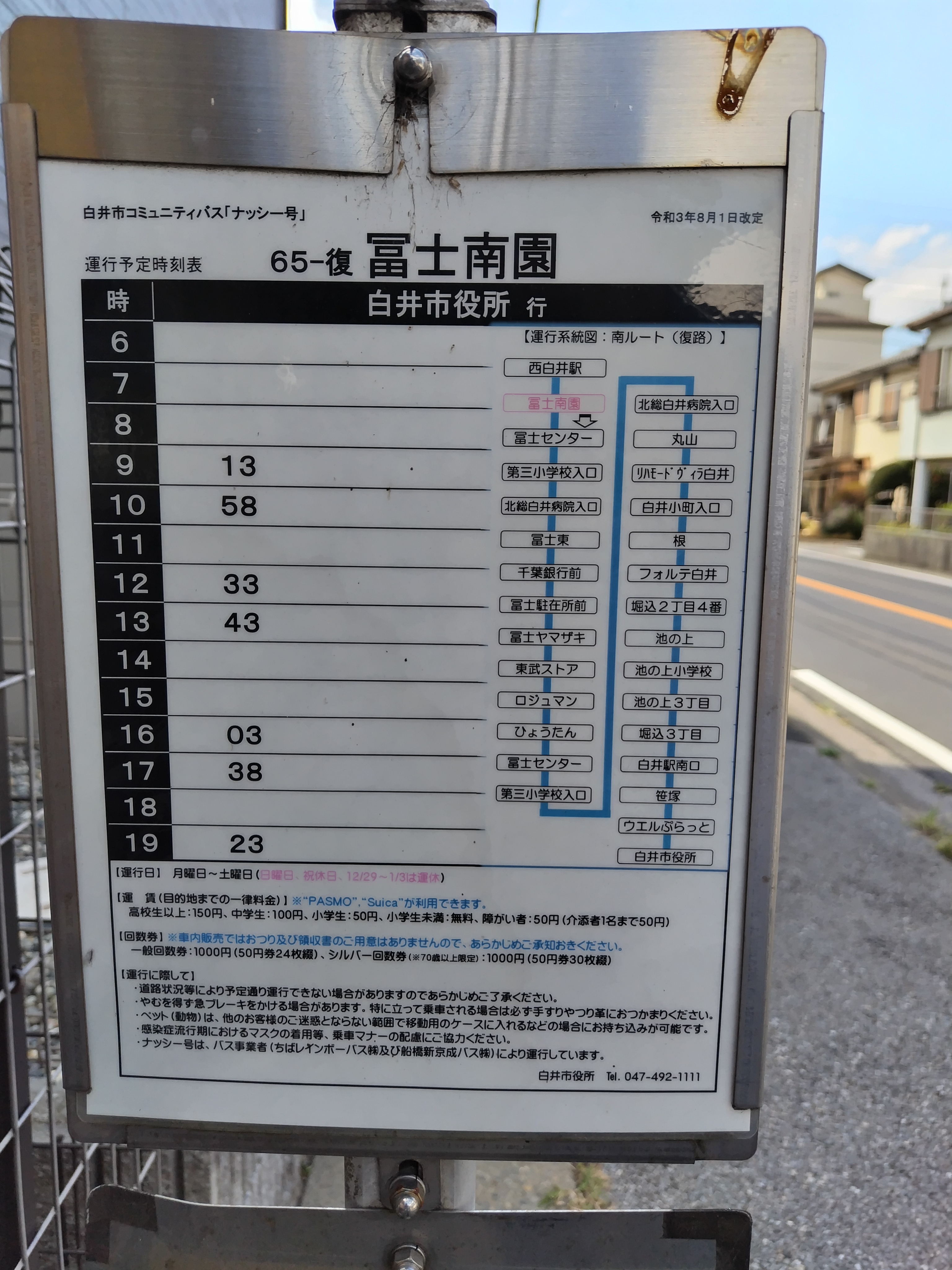 「白井市役所」「白井駅北口」「白井駅南口」「西白井駅」