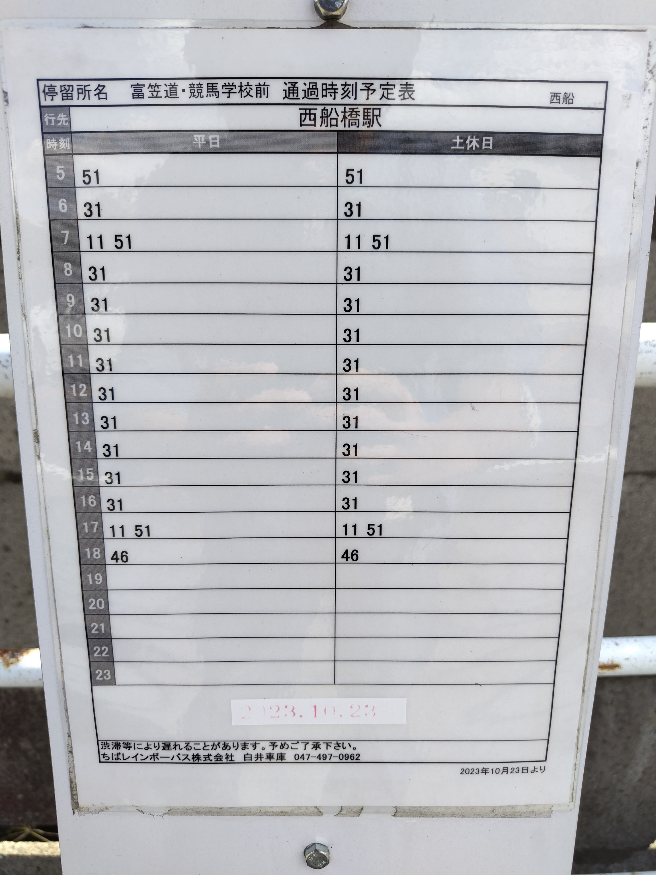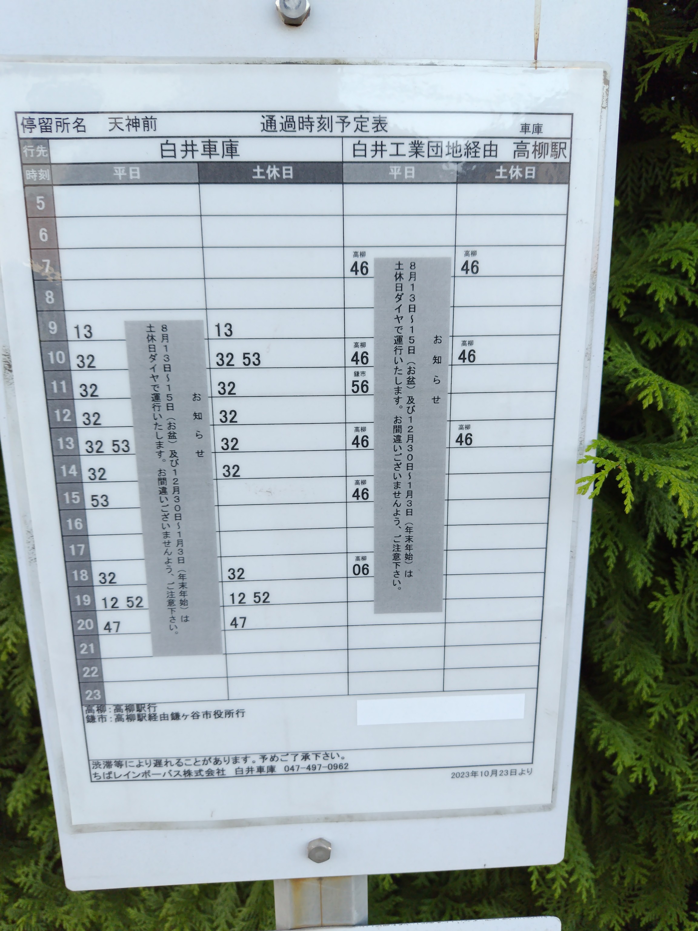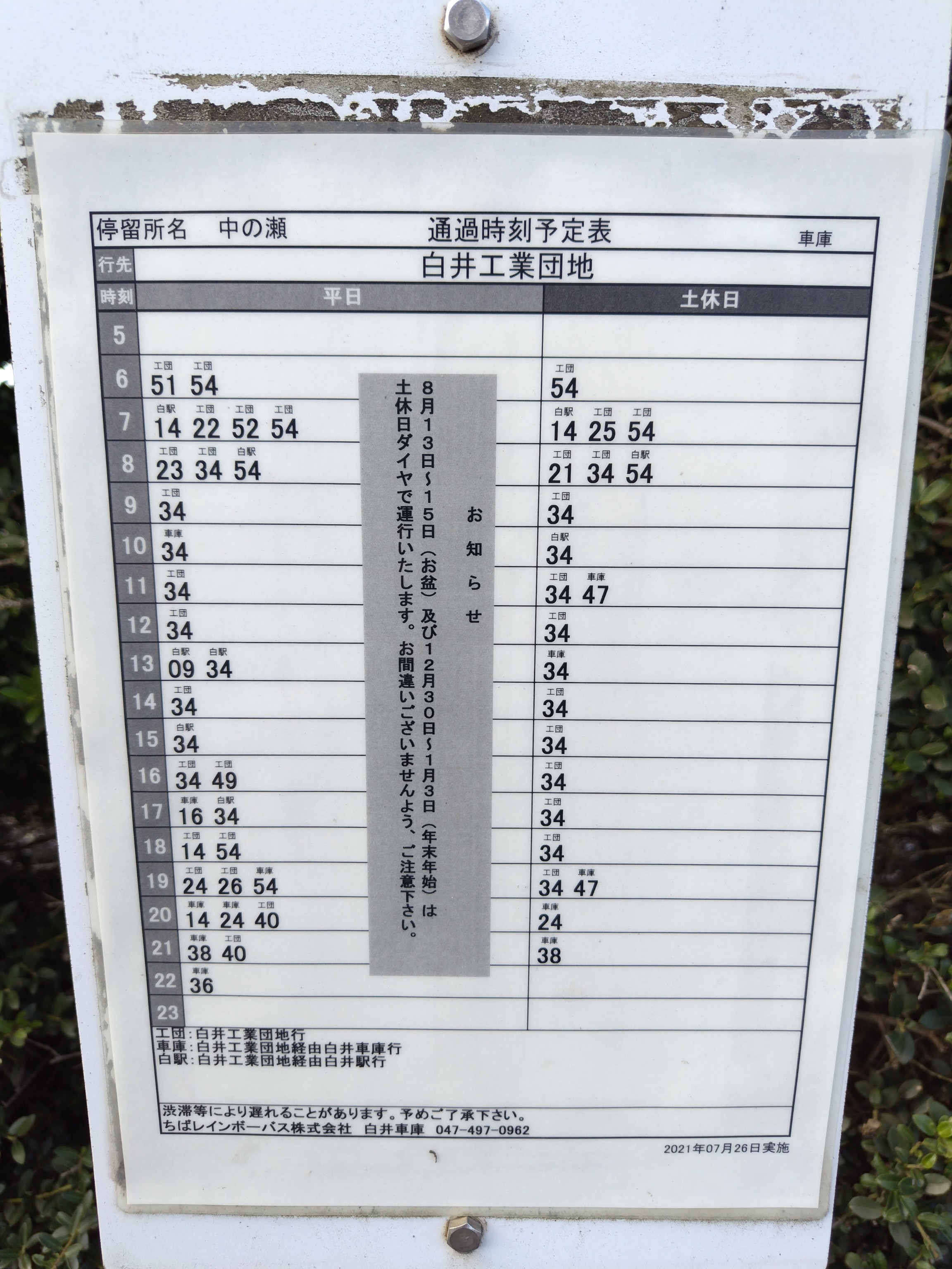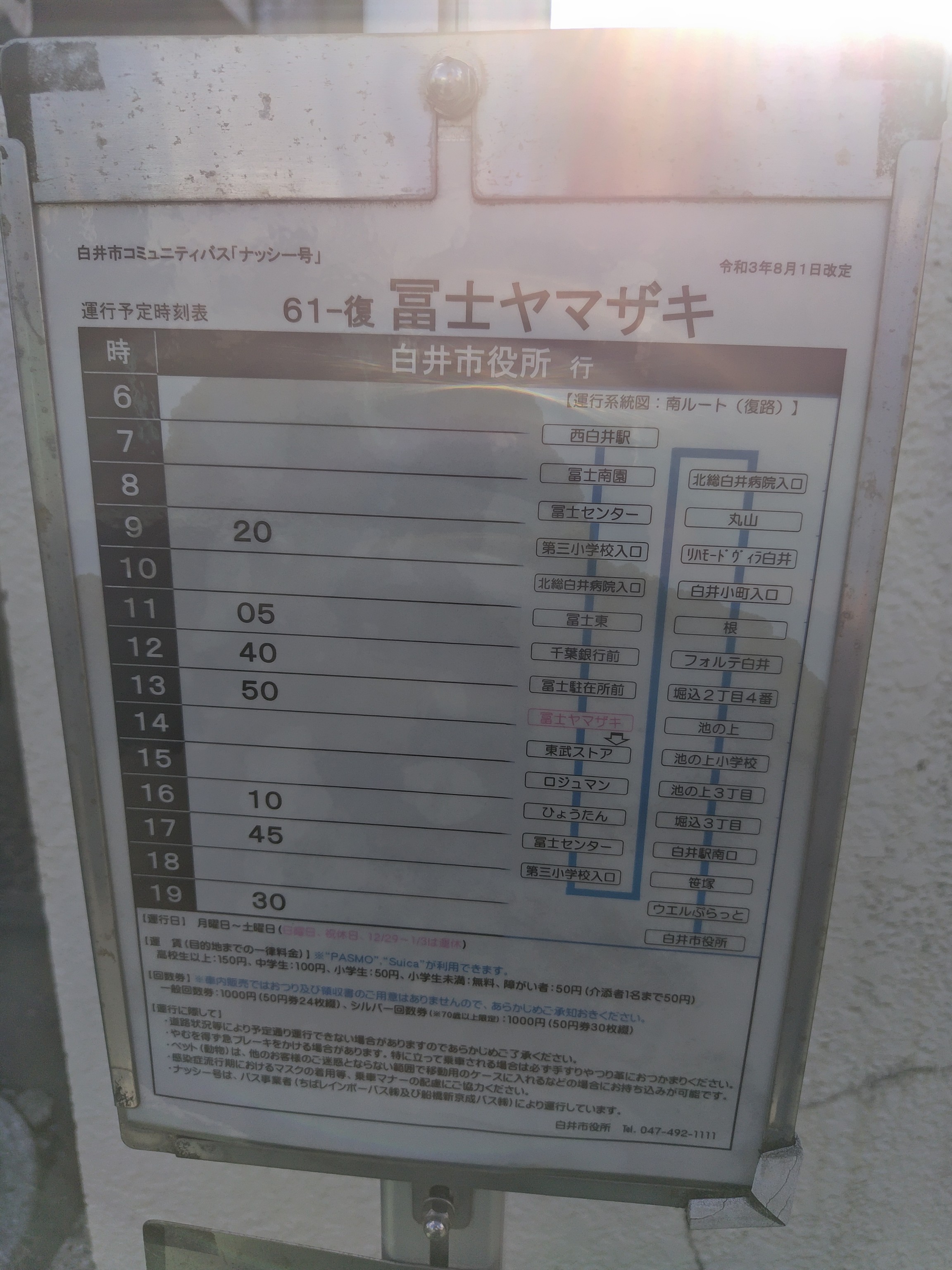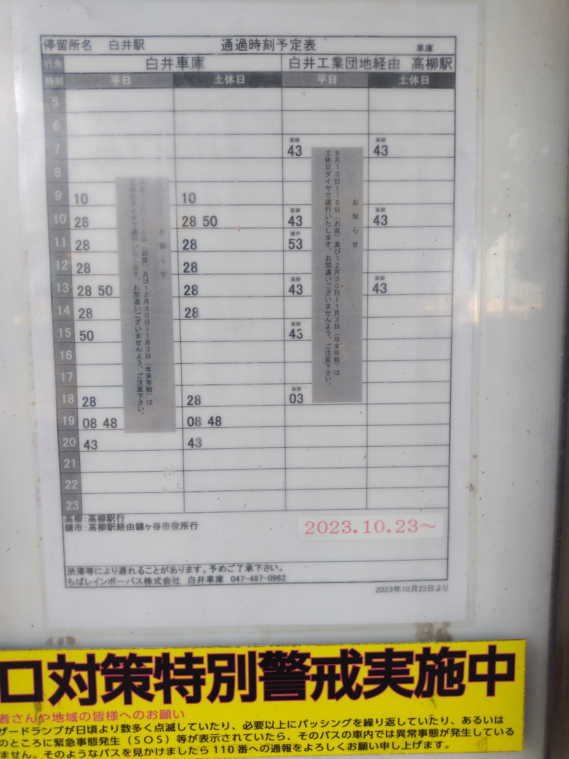 「白井市役所」「白井駅北口」「白井駅南口」「西白井駅」