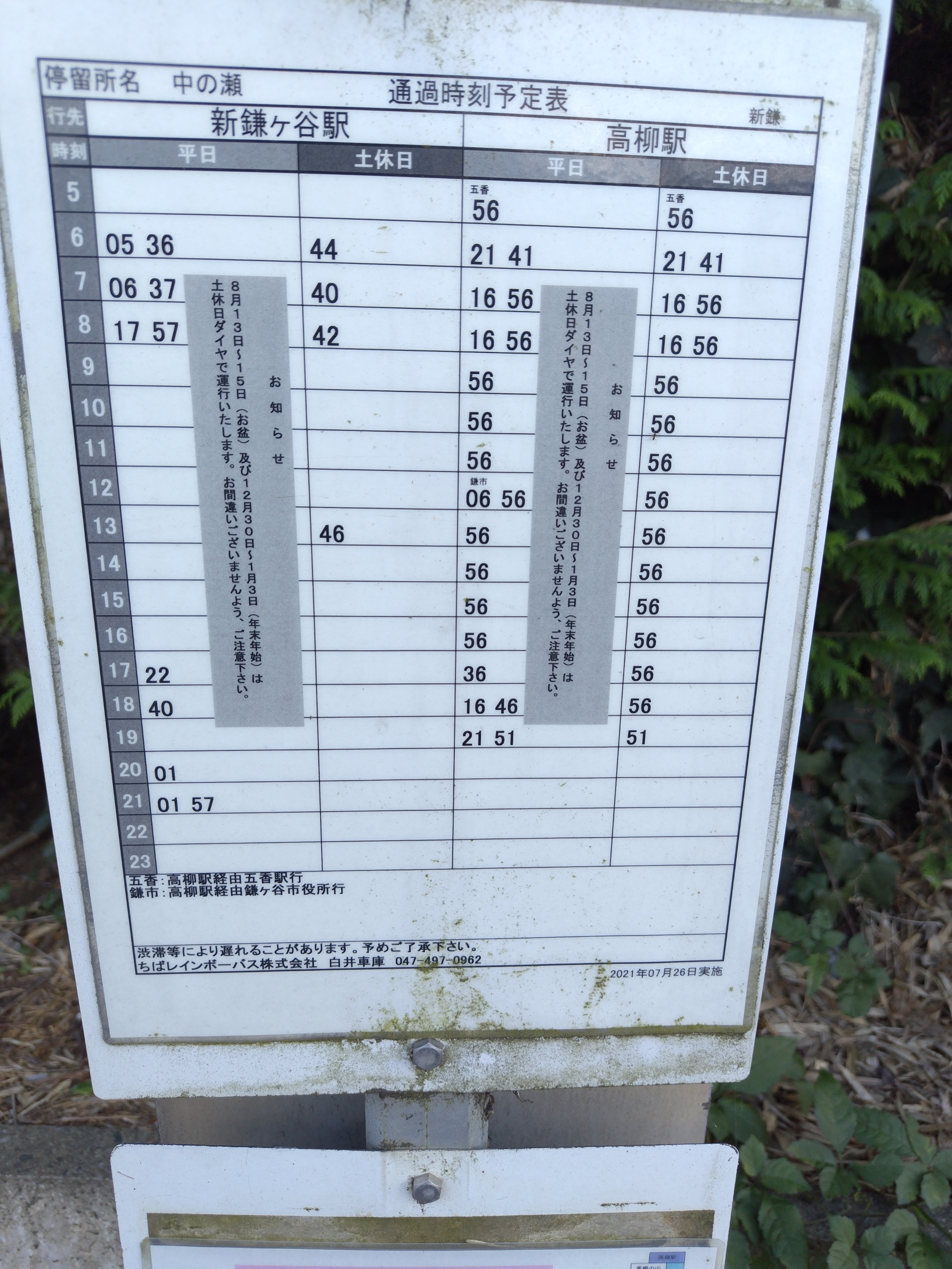 また、ナッシー号は日・祝日は運休なので徒歩時間も記載します。実際に歩きました。