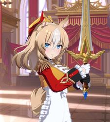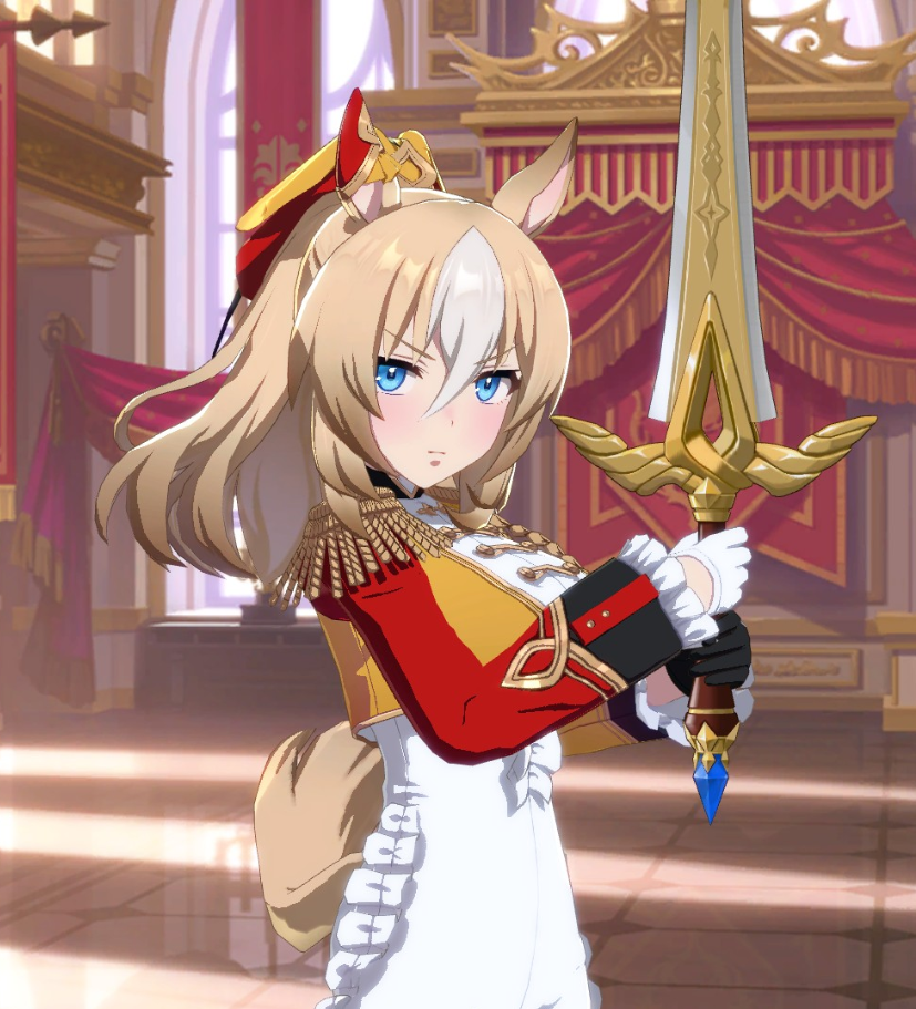 【デュランダルは約束通り、トレーナーにオルフェーヴルが口添えをしたことで、最大級の褒め言葉と手製の勲章をもらい、褒美としてハグしてわしゃわしゃしてもらうことができた】