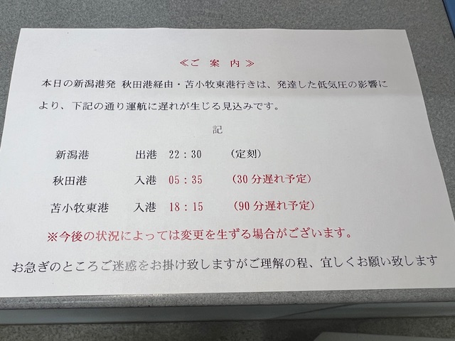 冬の日本海航行する時点で遅延はまあしょうがないというか…