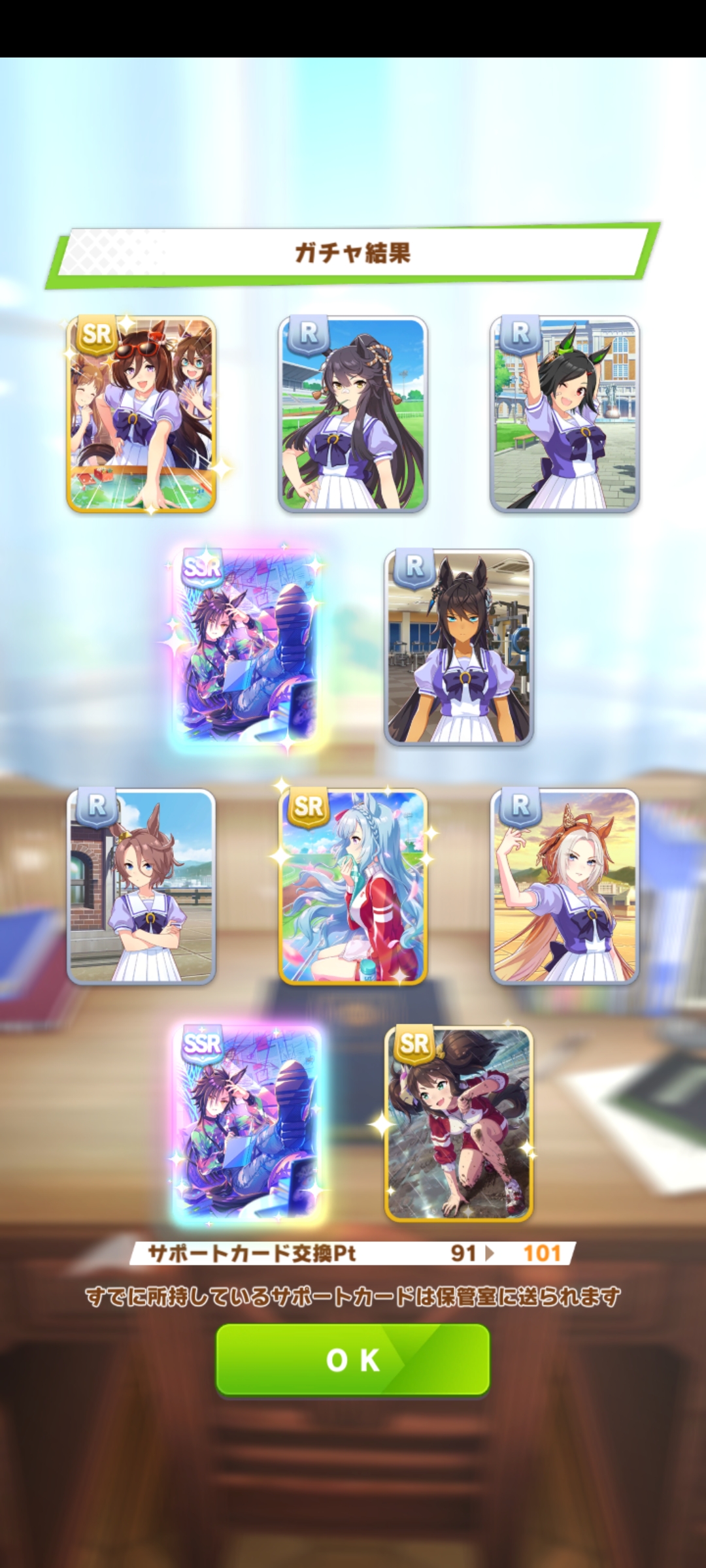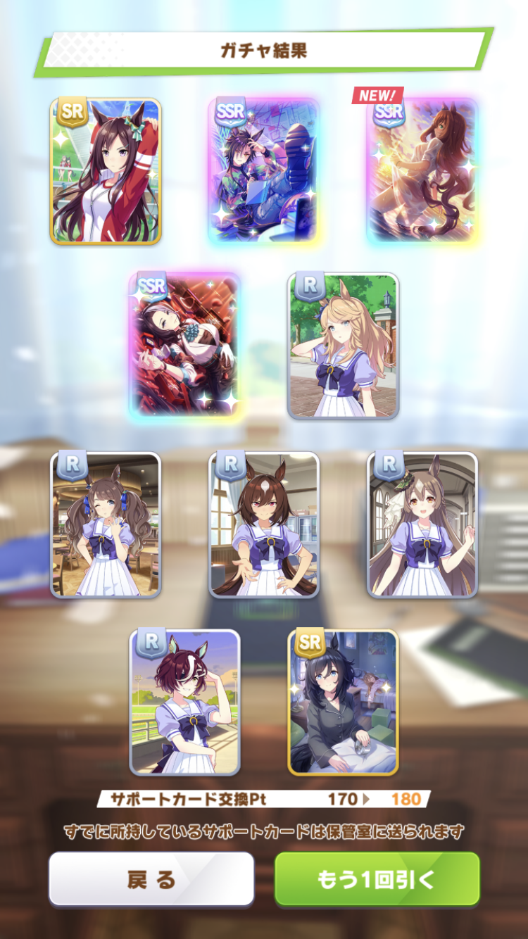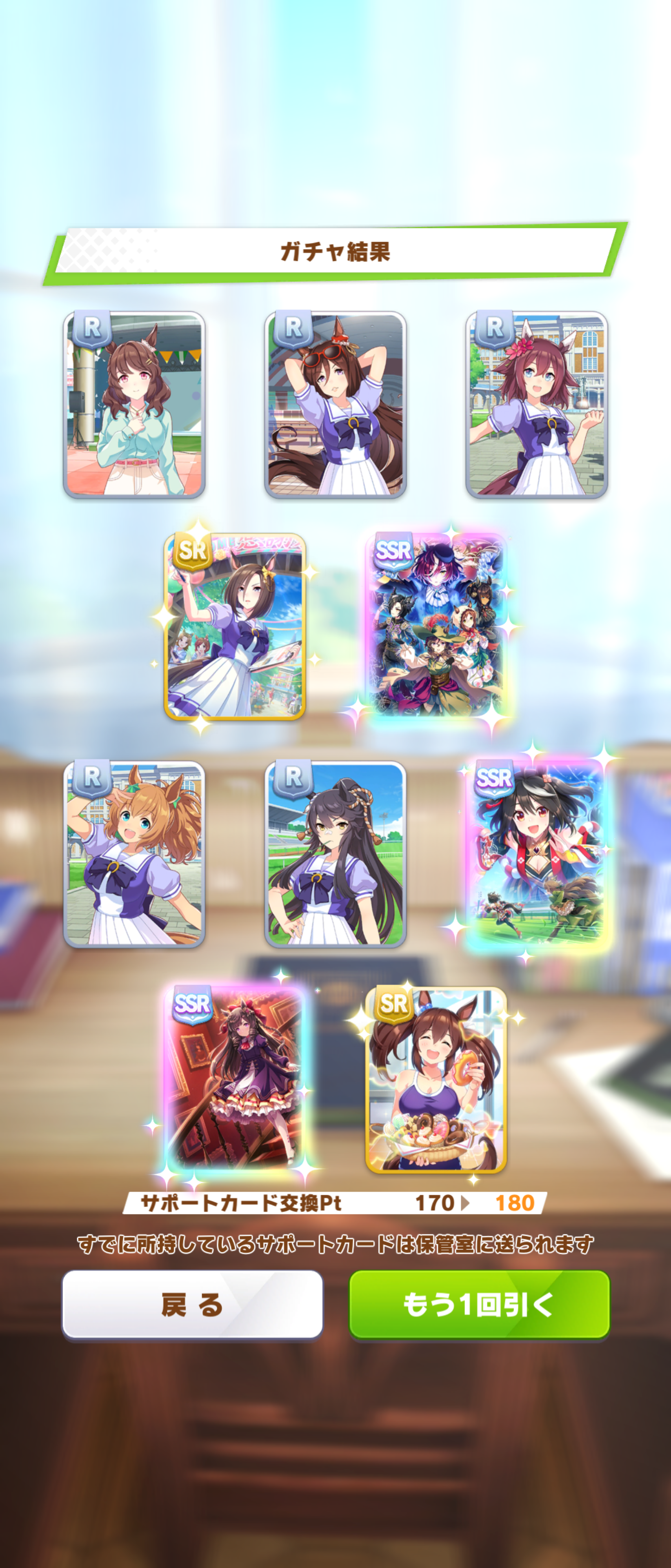 ちなみに今日の分は全被りSSRなしでスクショ撮り忘れました