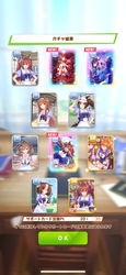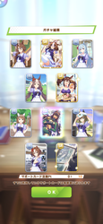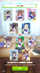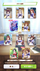1天井でダスカ完凸(交換済)、シャカ1凸、完凸済賢ファイン、スピゼファー、根性ゼファー、スタミナクリスエス