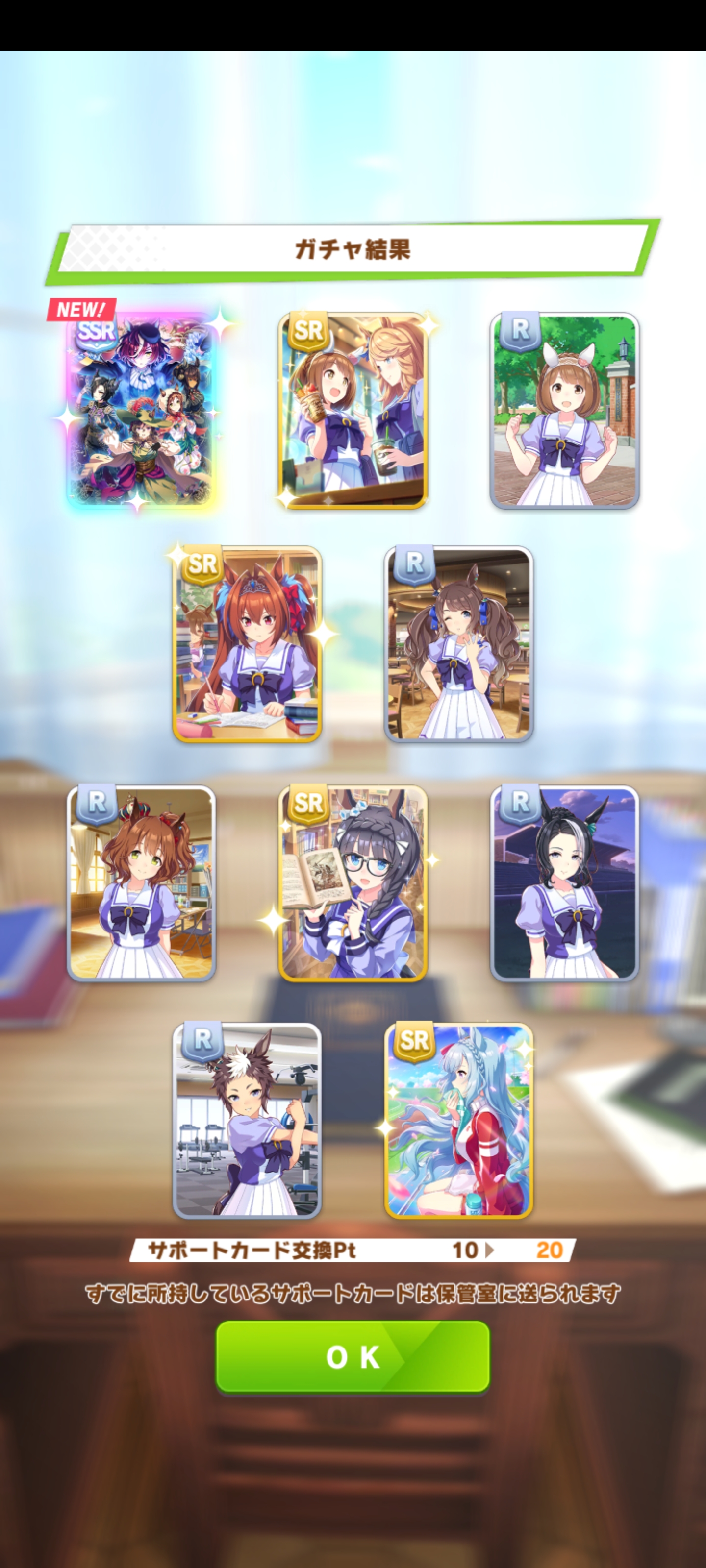 SSRは4枚ほど出たけど全部所持済の被りのみ