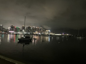 ビルの光が低い雲や霞により広がってるのはこれもこれでいい夜景