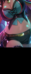 それを強調する妖しい輝きのタトゥーシールにボトムスと素肌の隙間