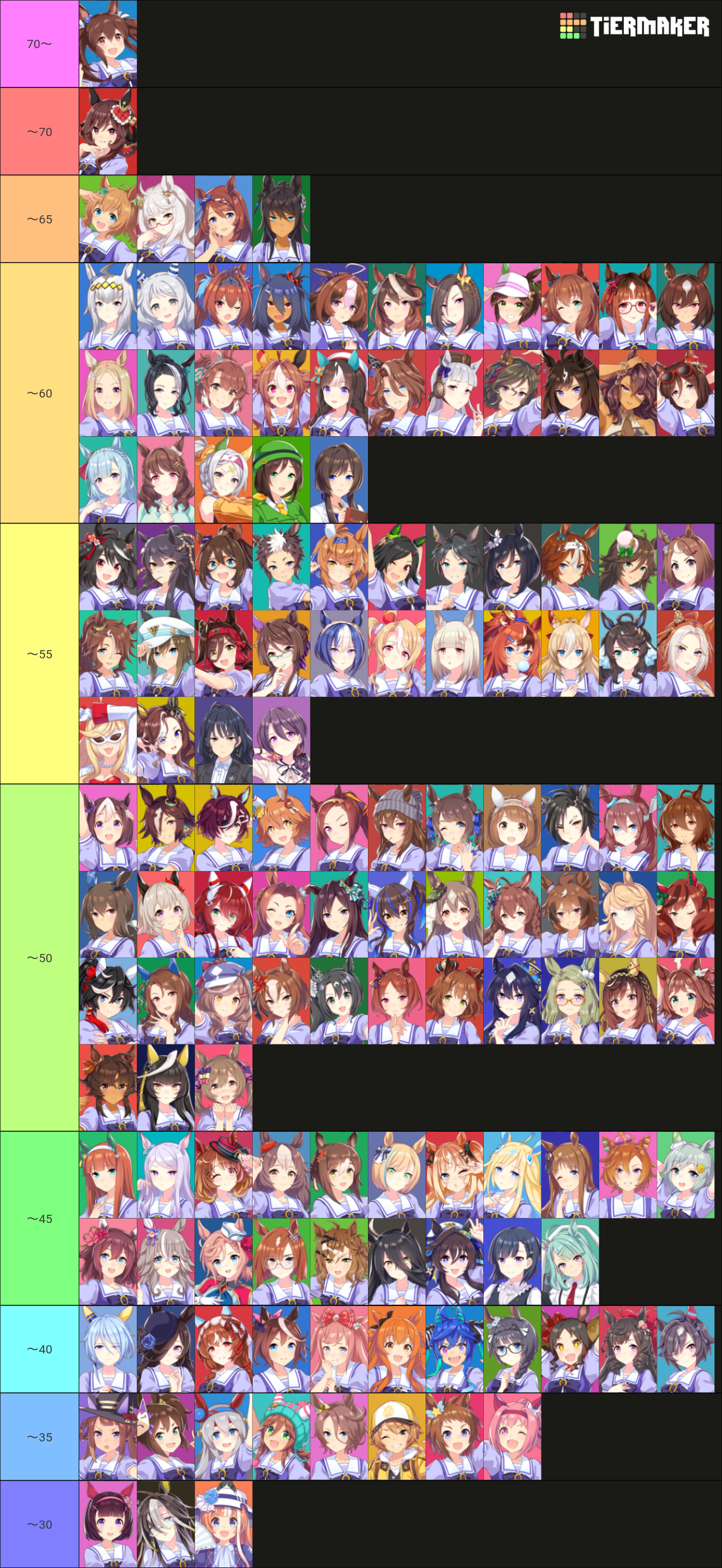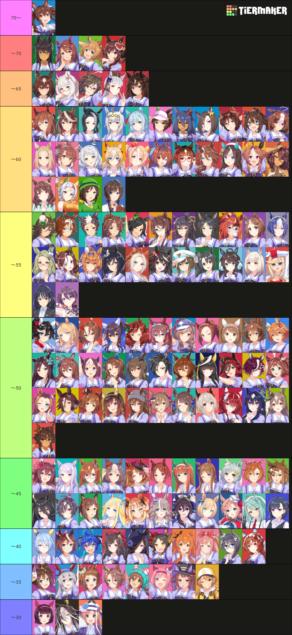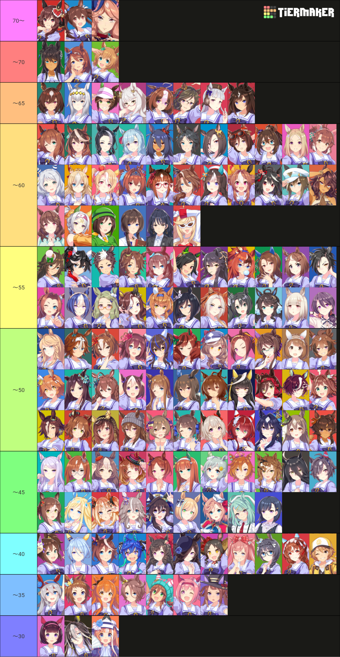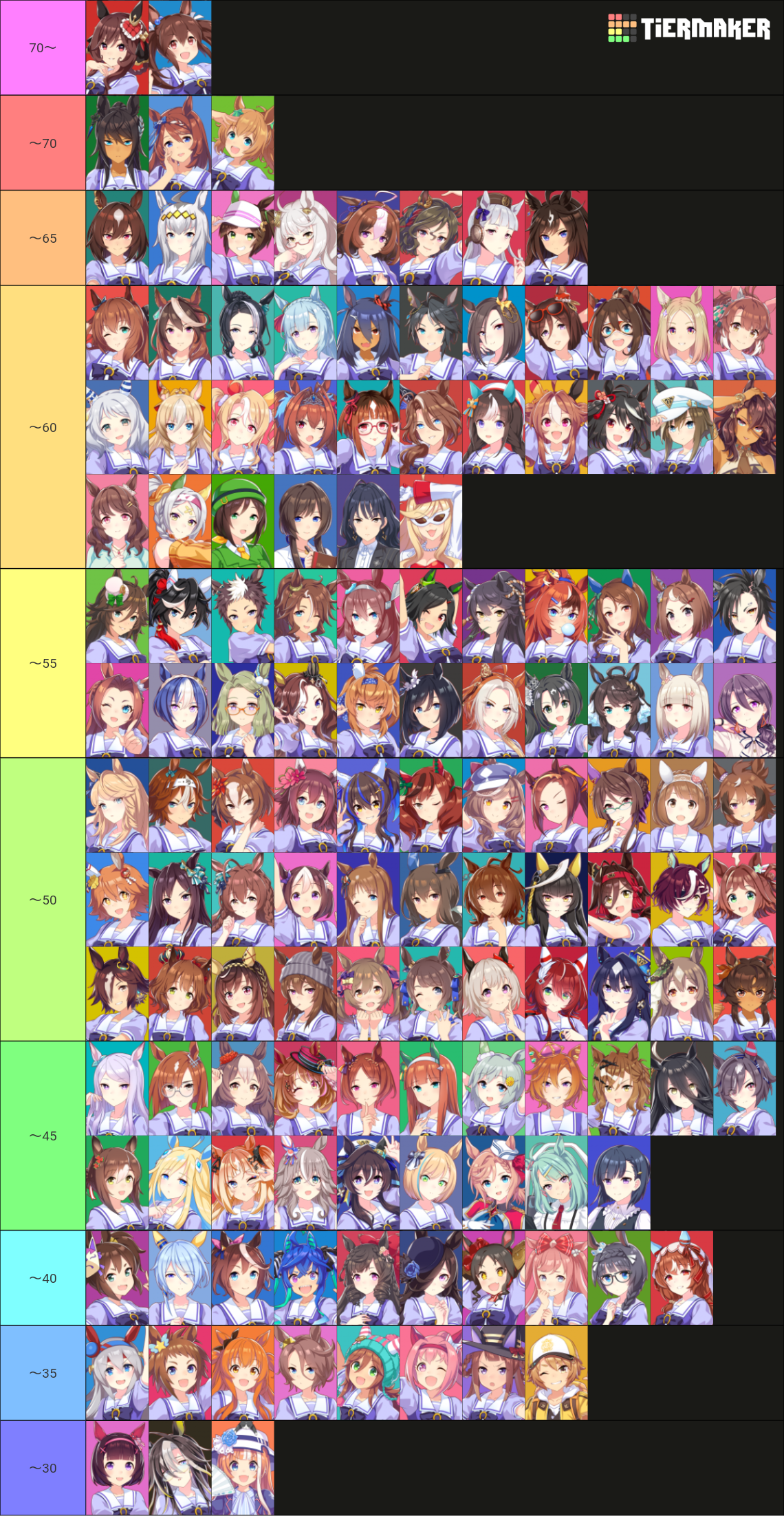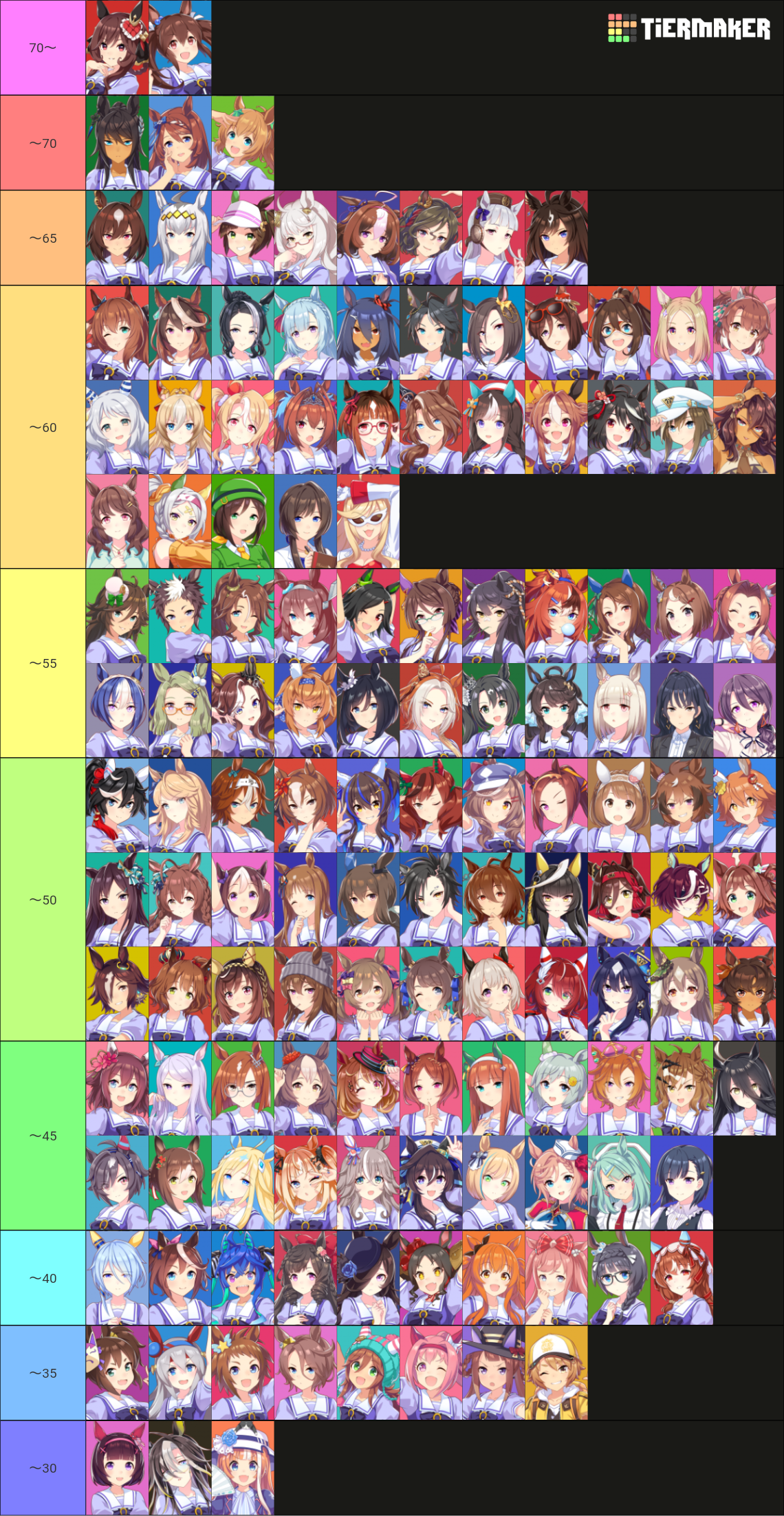 ドリジャはBWHが全ウマ娘で一番薄いしスイーピーと5cmくらいしか違わないから一番下でもよさそう