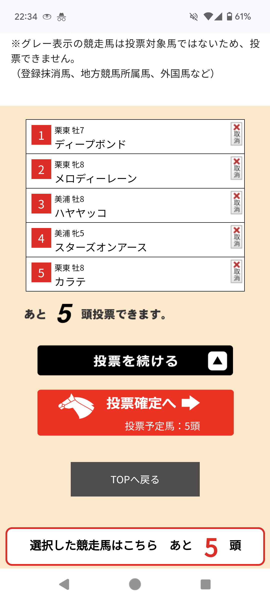 5頭で投票したって、え ん や で ?