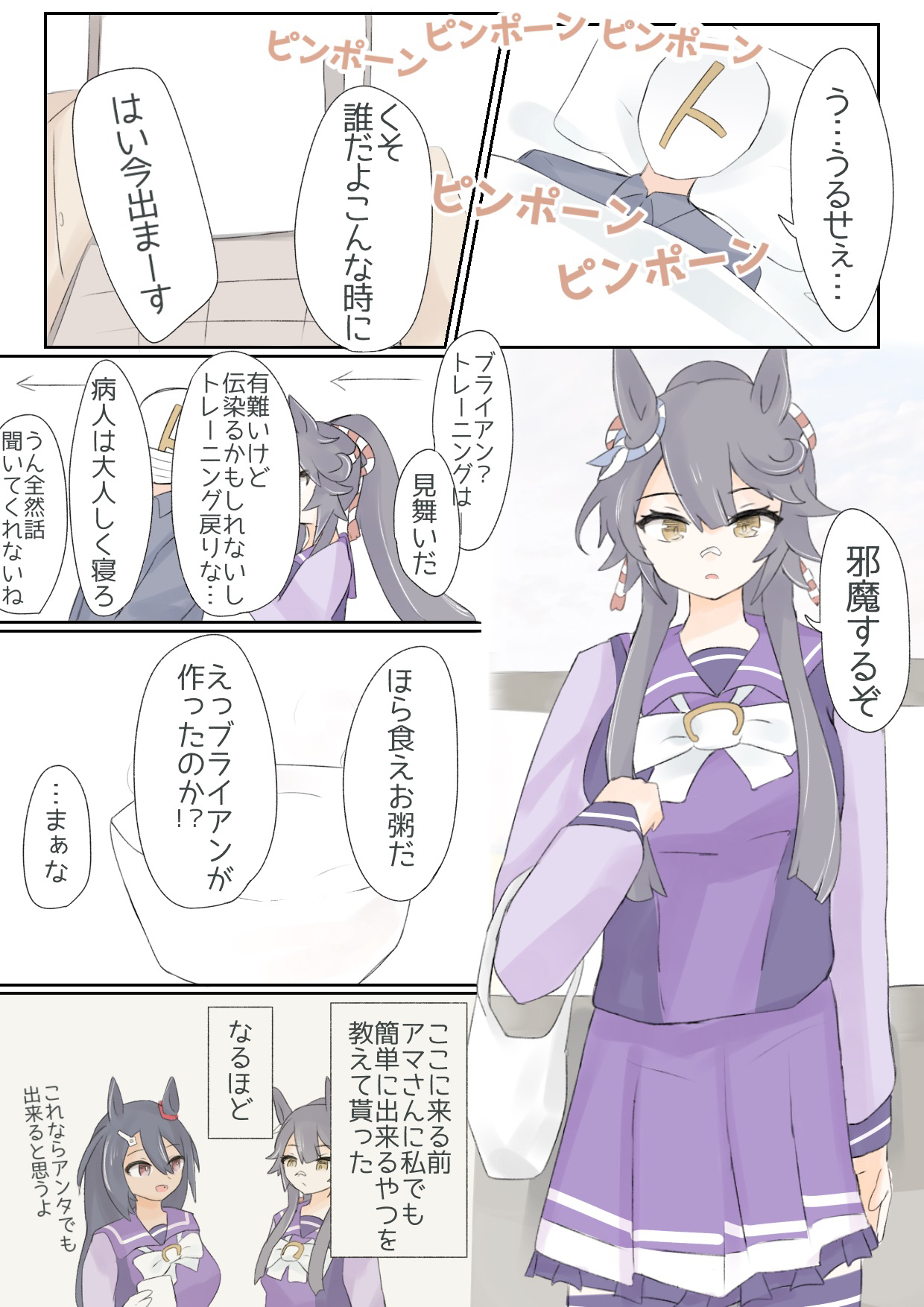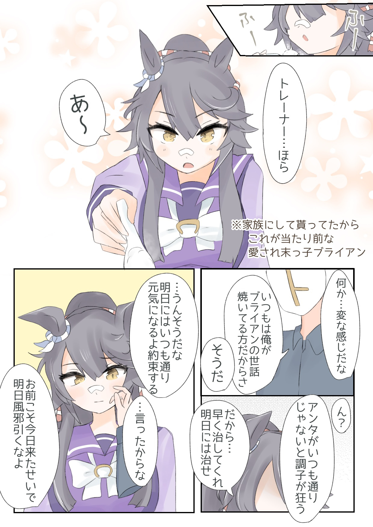 「大丈夫ですか!?」とりんごを差し入れしようとするもトレーナーが寝ている部屋に辿り着くまでに全部食べてるスペシャルウィーク