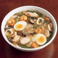 麺は焼きそば、スープはラーメンのとんこつ、具はかも南蛮