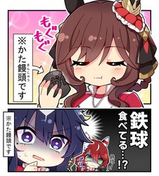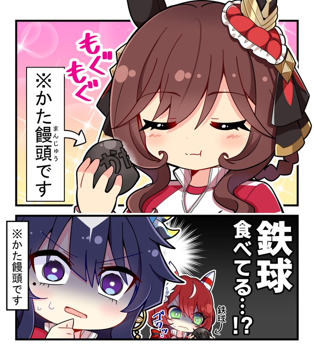 しかし「かた饅頭」という鉄球モデルの使いまわしアイテムがアプリ内で登場しているので食べられる鉄球を寄越すジェンティルというのも想像に難くない・・・。