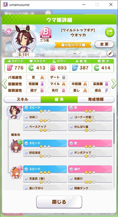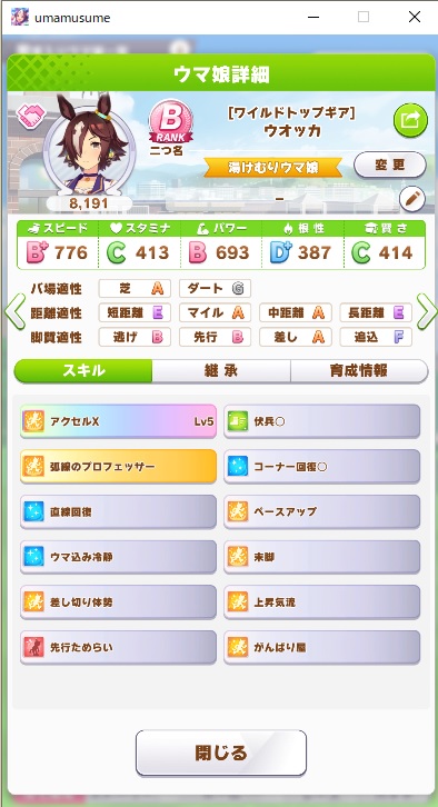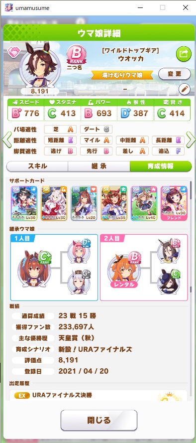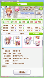 当時まだ突破もままならなかった育成技能でファイナルズ制覇(=当アカウント初めての温泉旅行)