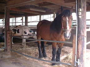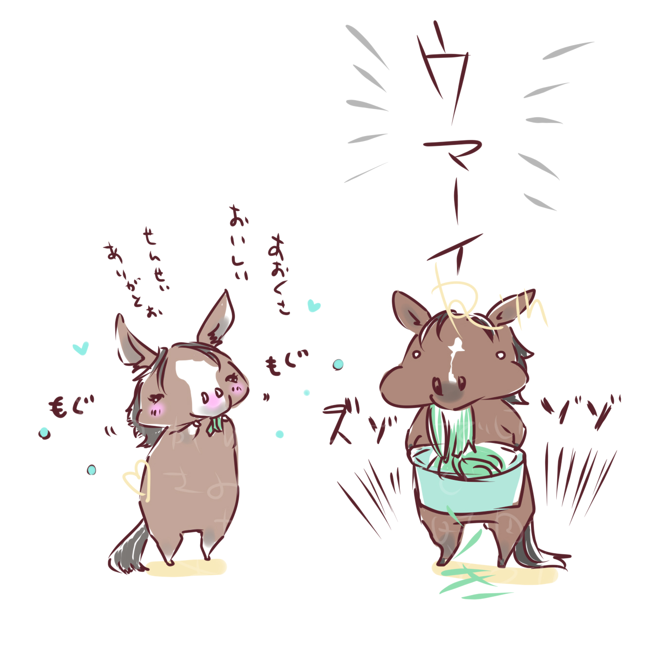 誕生日プレゼントを貰う馬とつまみ食いしにきた馬
