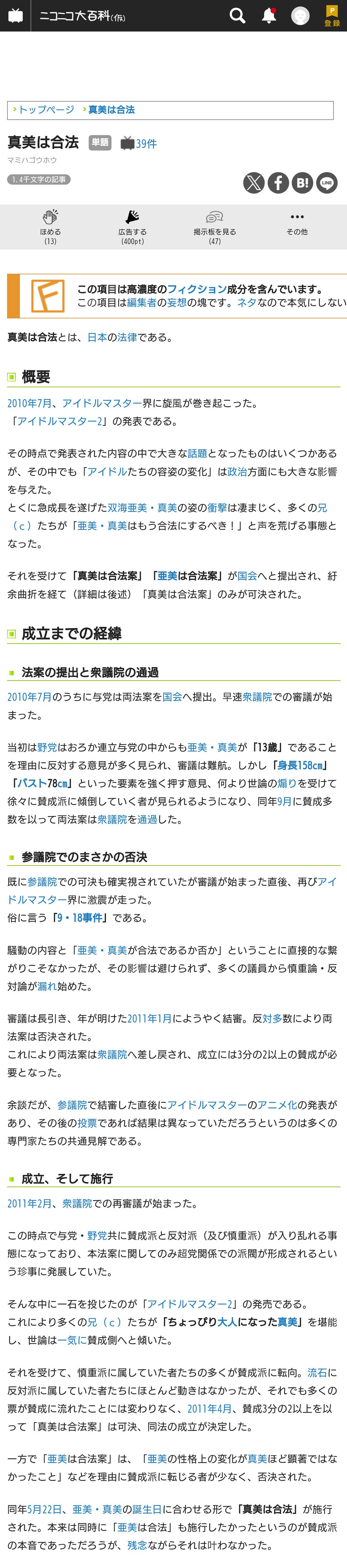 アイマスの世界では国会決議を経て真実は既に合法とされている