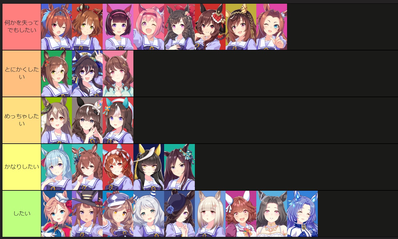 まあ皆さんもどうぞって言ってるあたり個人的なtier表だろうから何でこのキャラがここなんだよとは言わんよ性癖は人それぞれだから