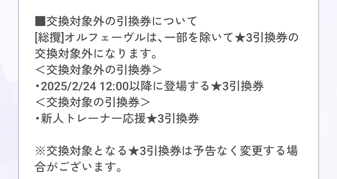 そういえばオルフェは今後の引換券対象に入っているのかな