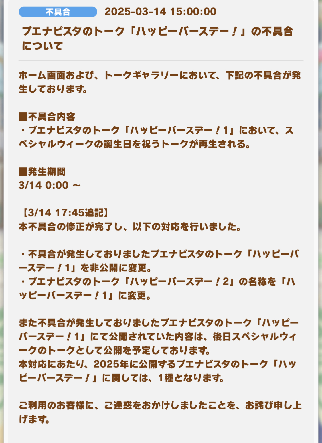 これ本来スペの誕生日のやつだよな?バグかそれとも間違えたのか?