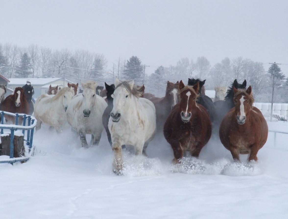 雪を掻き分け久住君を迎えに来てくれる妊娠ばんえいウマ娘のリアル馬化
