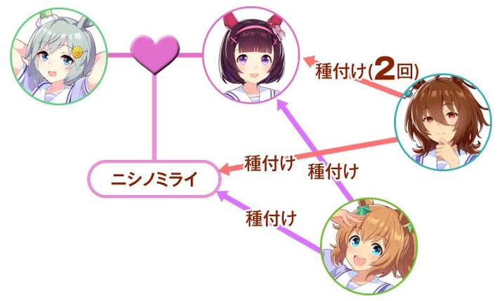 件の娘のニシノミライとタキオンとニシノミライの子供のニシノヒナギクとかいう