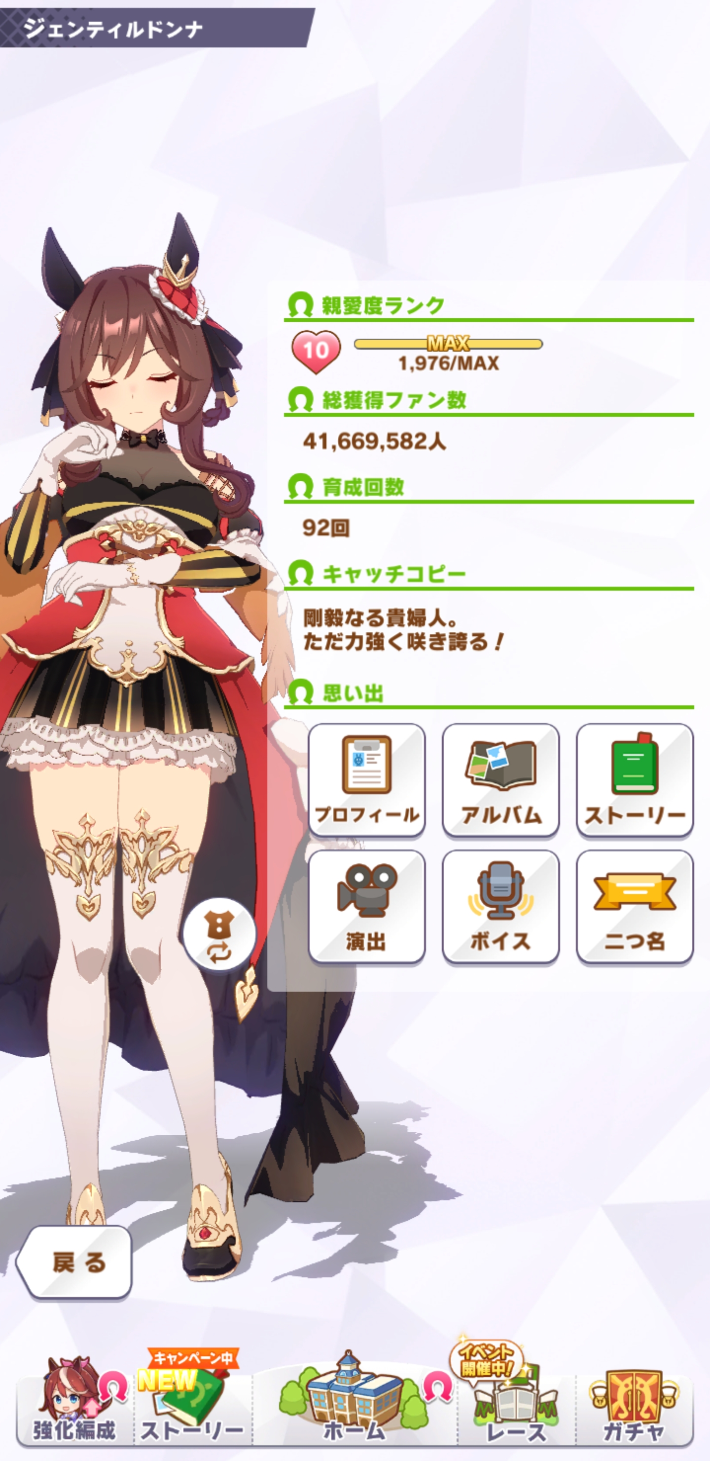 この前ポッケ出たし、ジェンティルさんもそろそろかなと思ってた