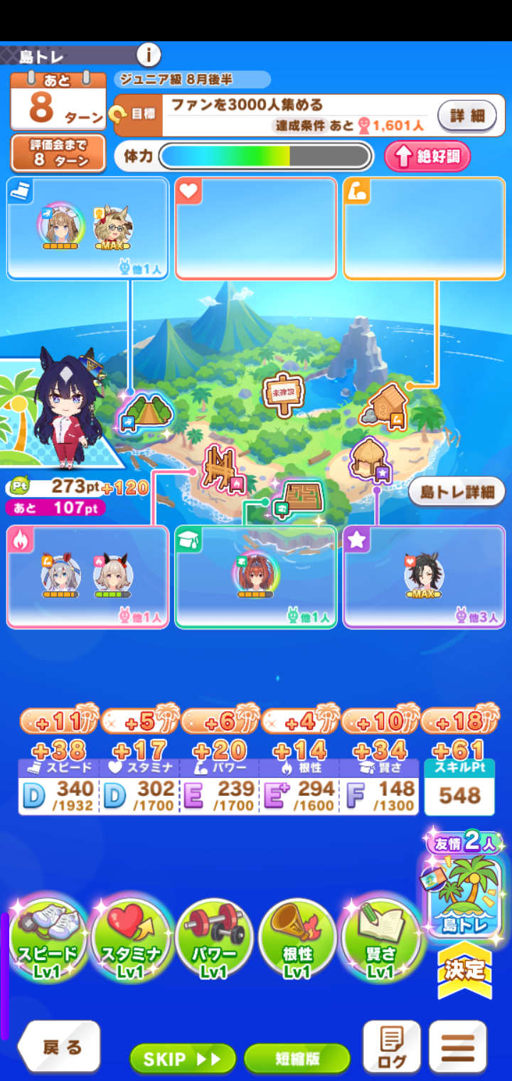 青はクラシック以降は基本狙わなく、万一クラシック前半で青のやる気や友情が出ても最初青以降ずっとピンクにしておけば1個は拾うのは許容できるから優先