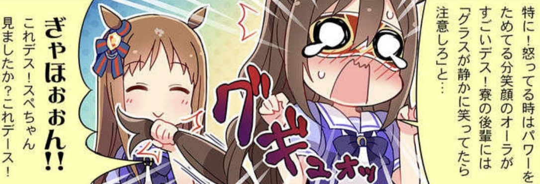 こちらの方のウマ娘は尻尾の肉質部分をちゃんと描いているけど、公式ウマ娘もこんな感じなのかね