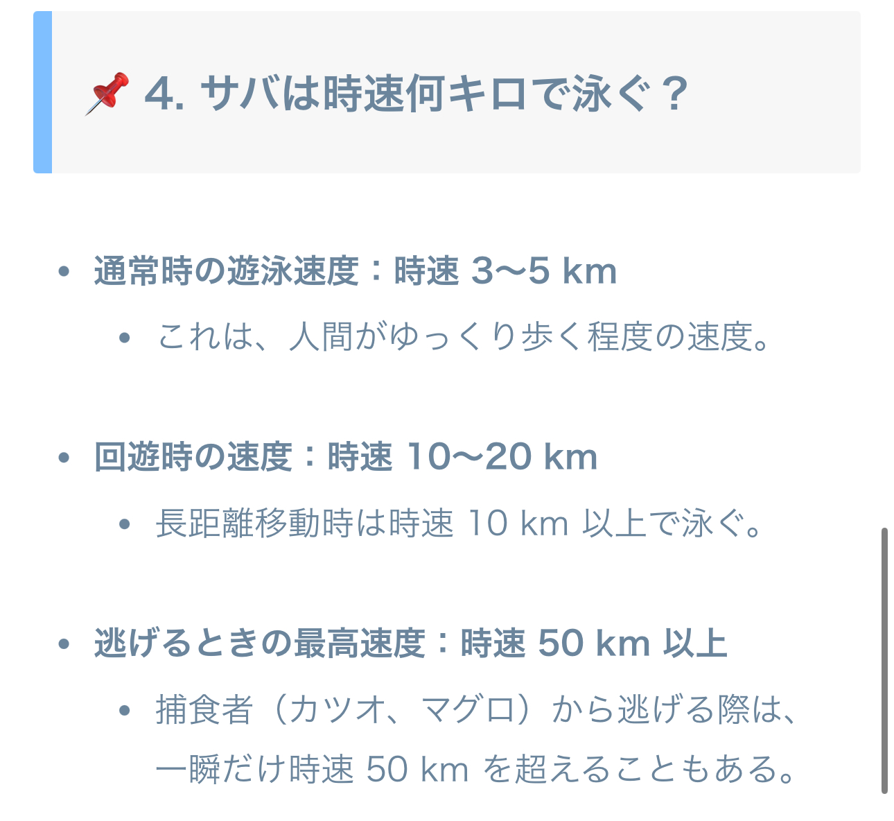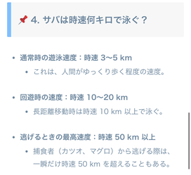 ほほう、サバの速さは約時速50km……。