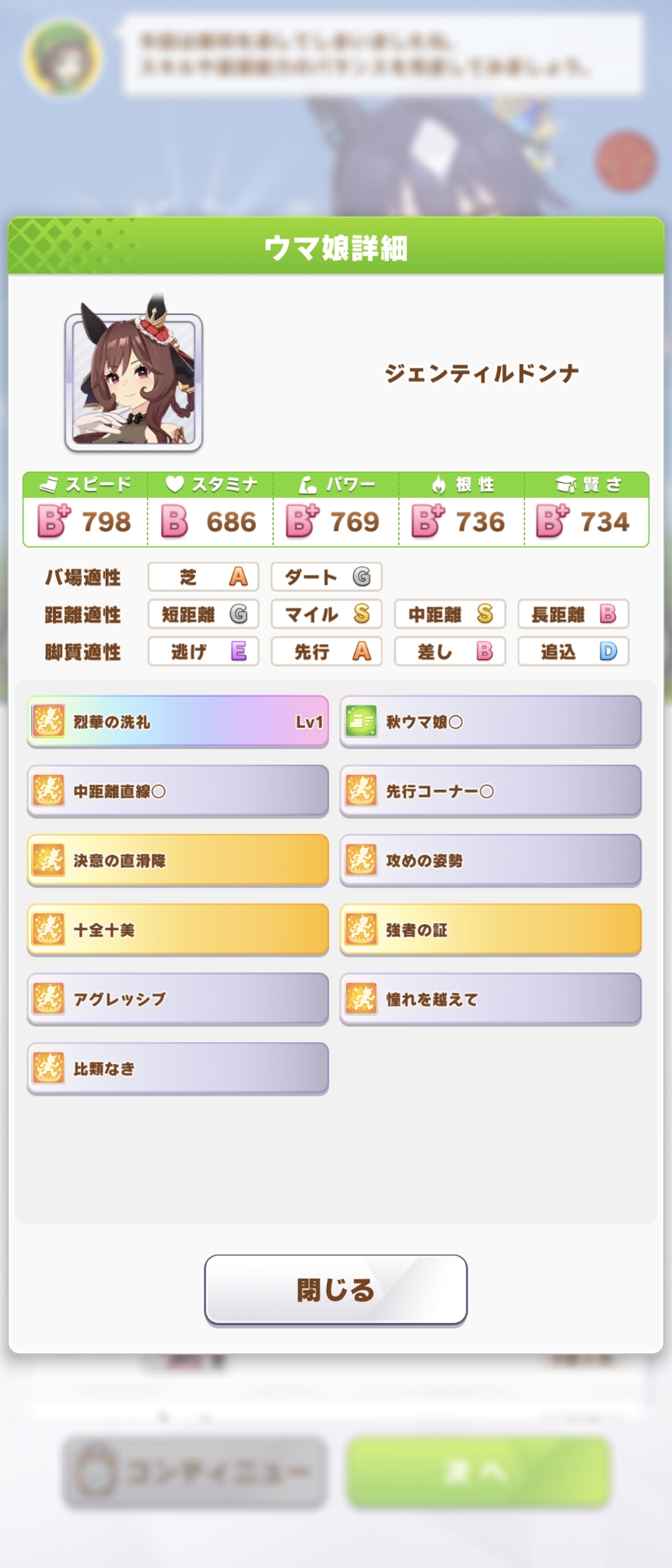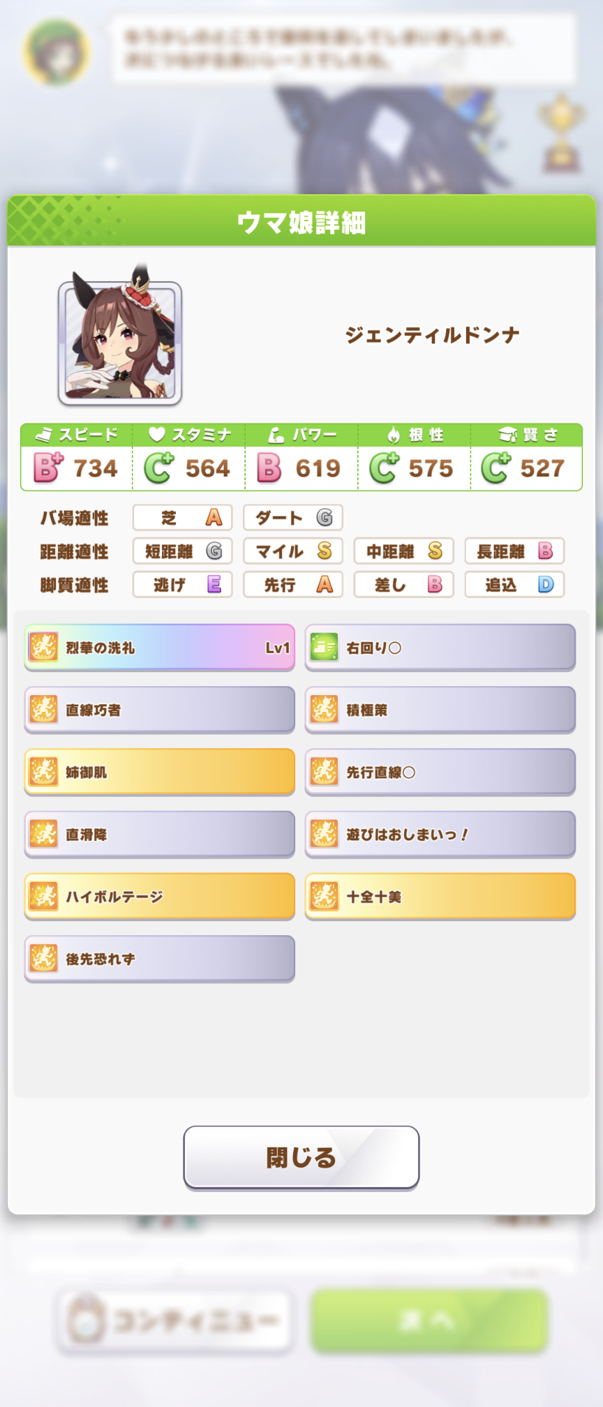とりあえず桜花賞だけでも、と初期スキルの心弾んでや負けん気とかを取って挑んだらそれを嘲笑うかのように同じスキルの金スキルを持ってくるという心へし折れるスキル構成…